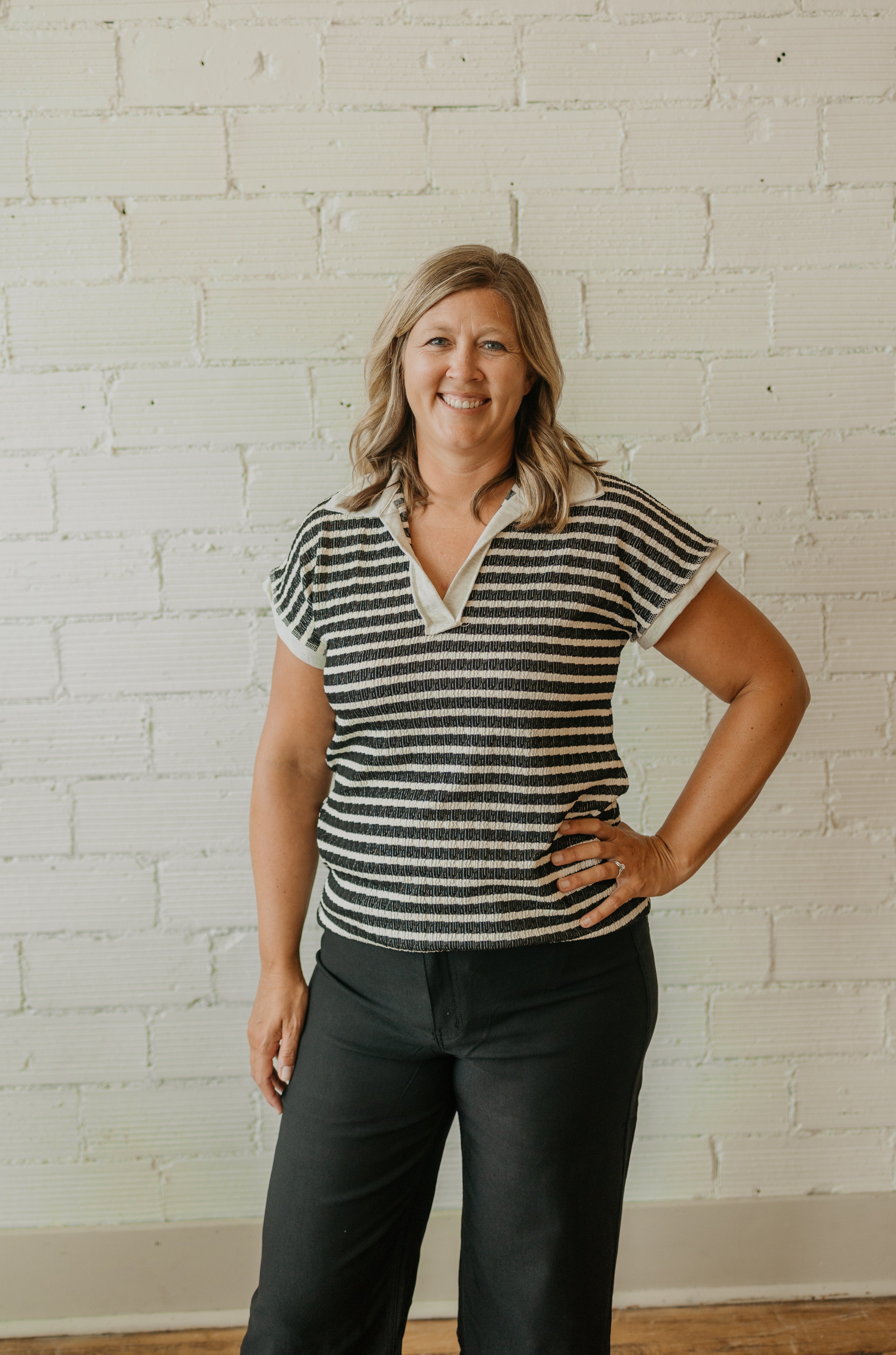 KATIE COLLARED JACQUARD CONTRAST TOP