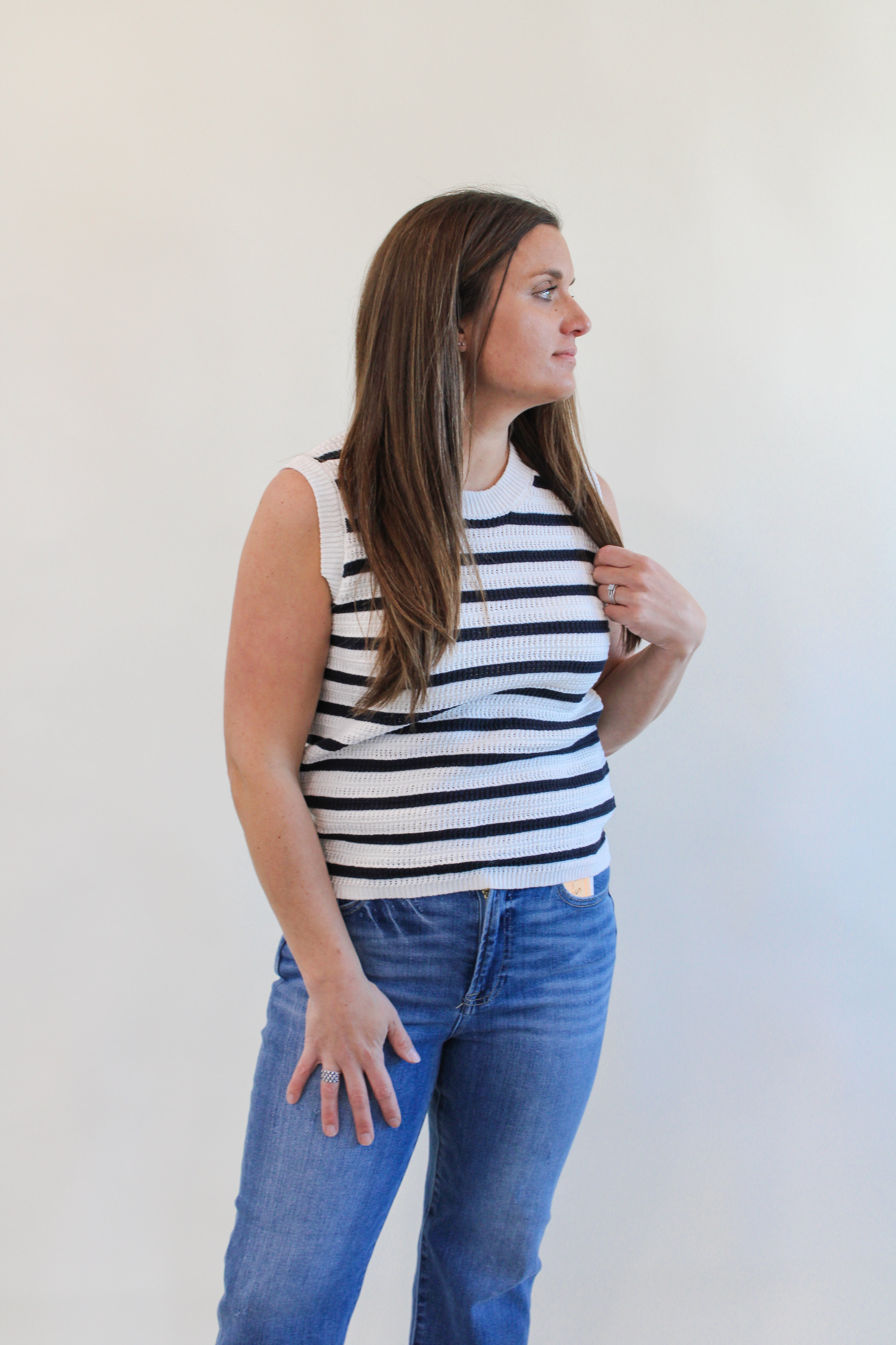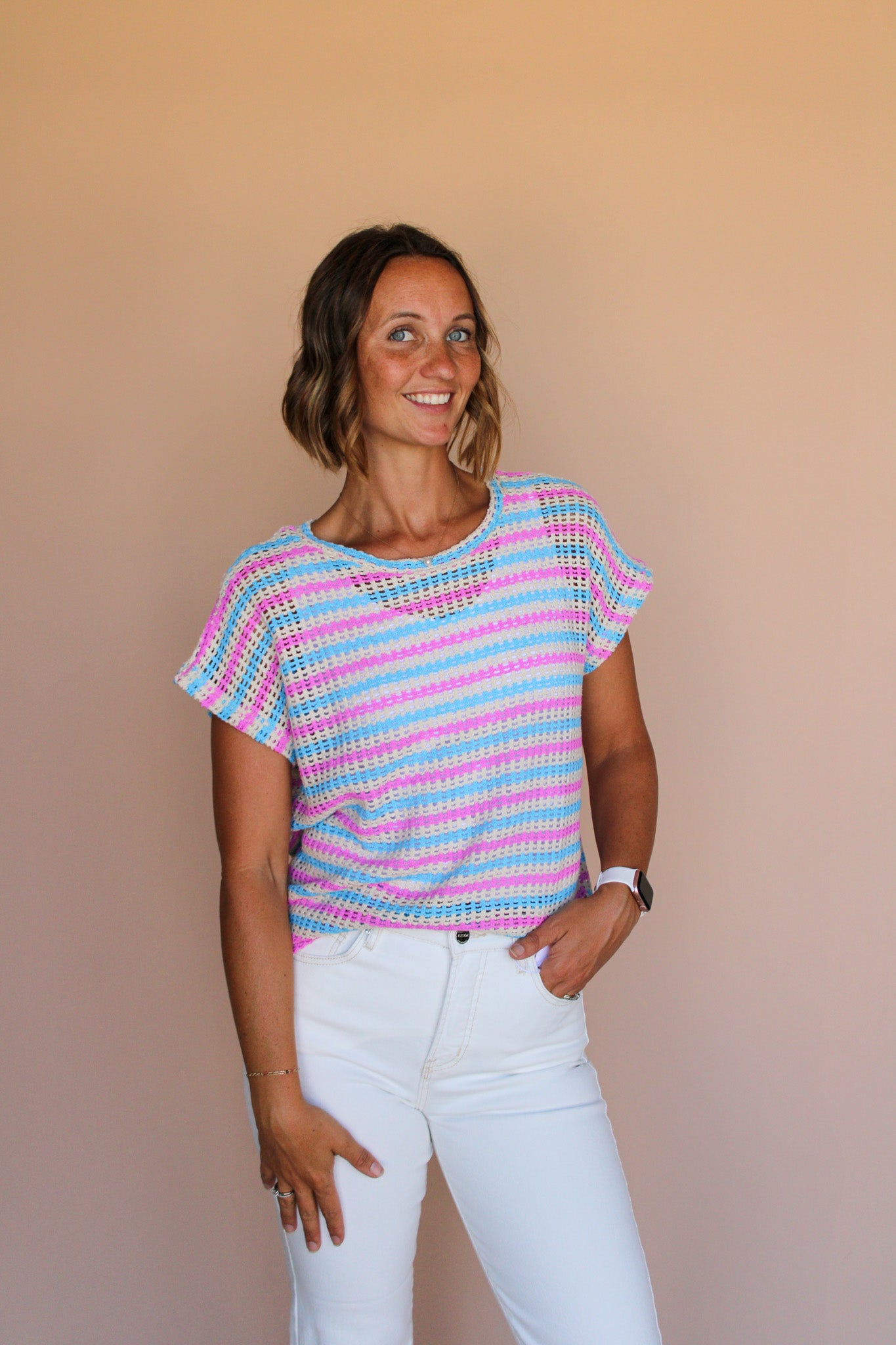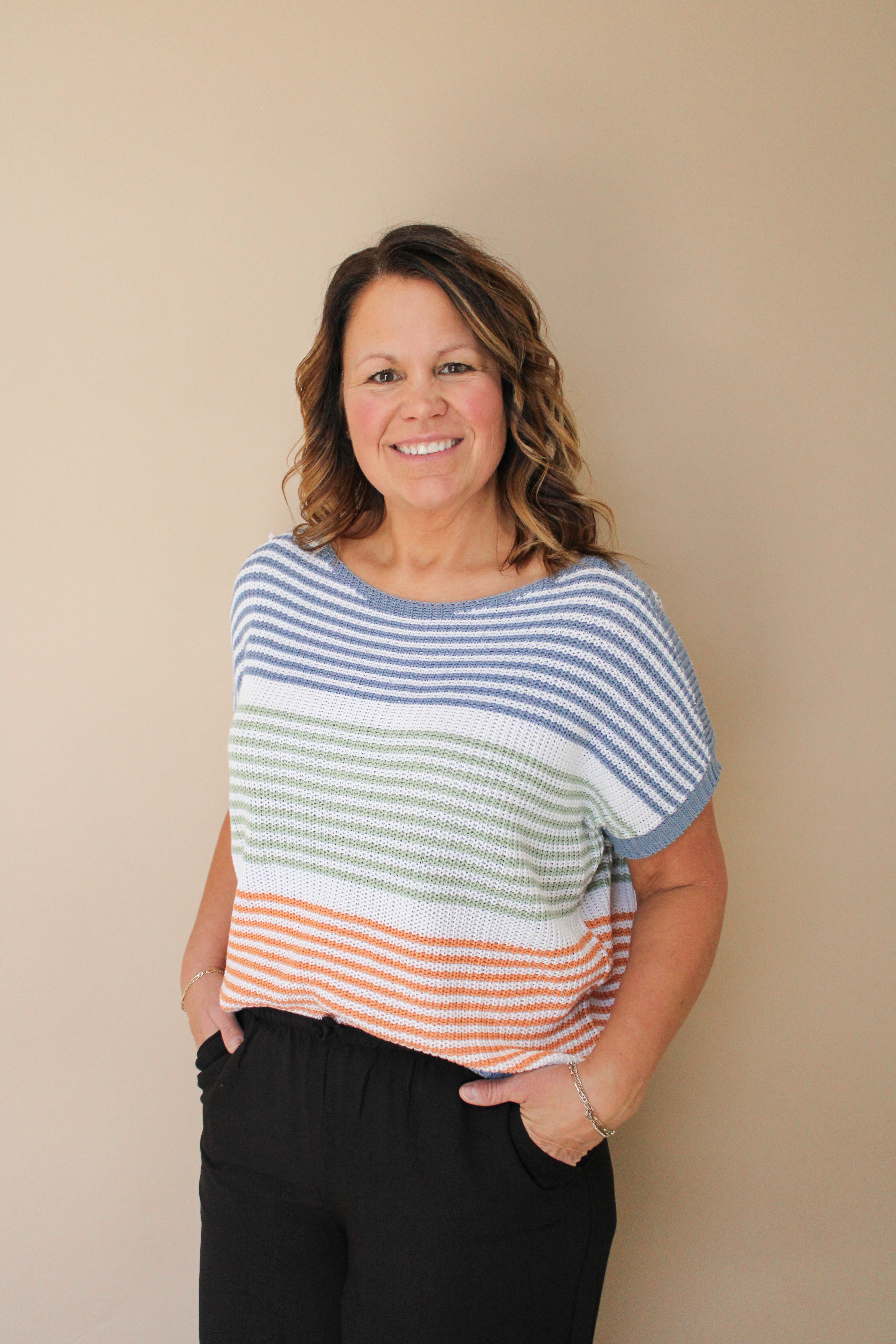 TEAGAN STRIPED SHORT SLEEVE SWEATER