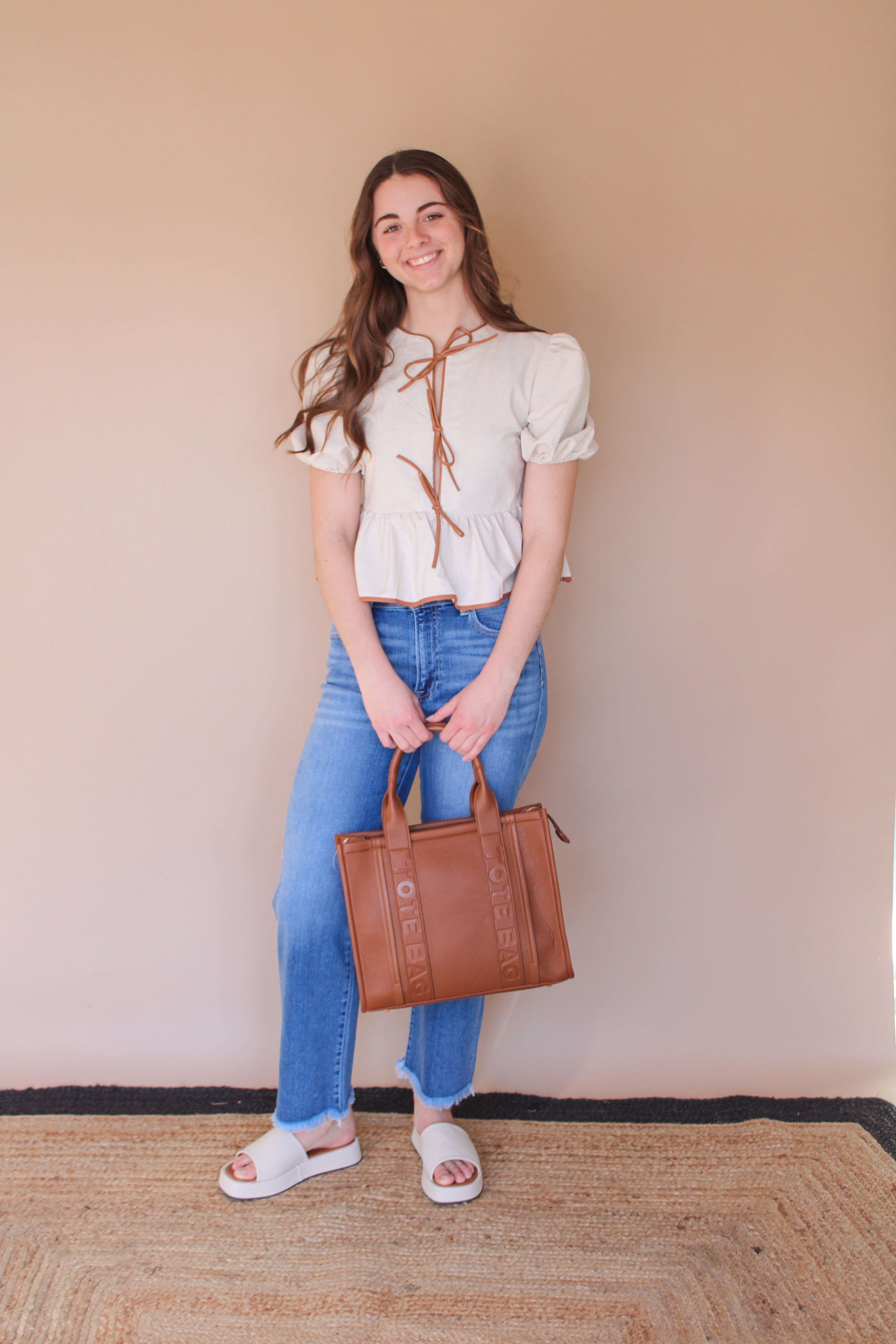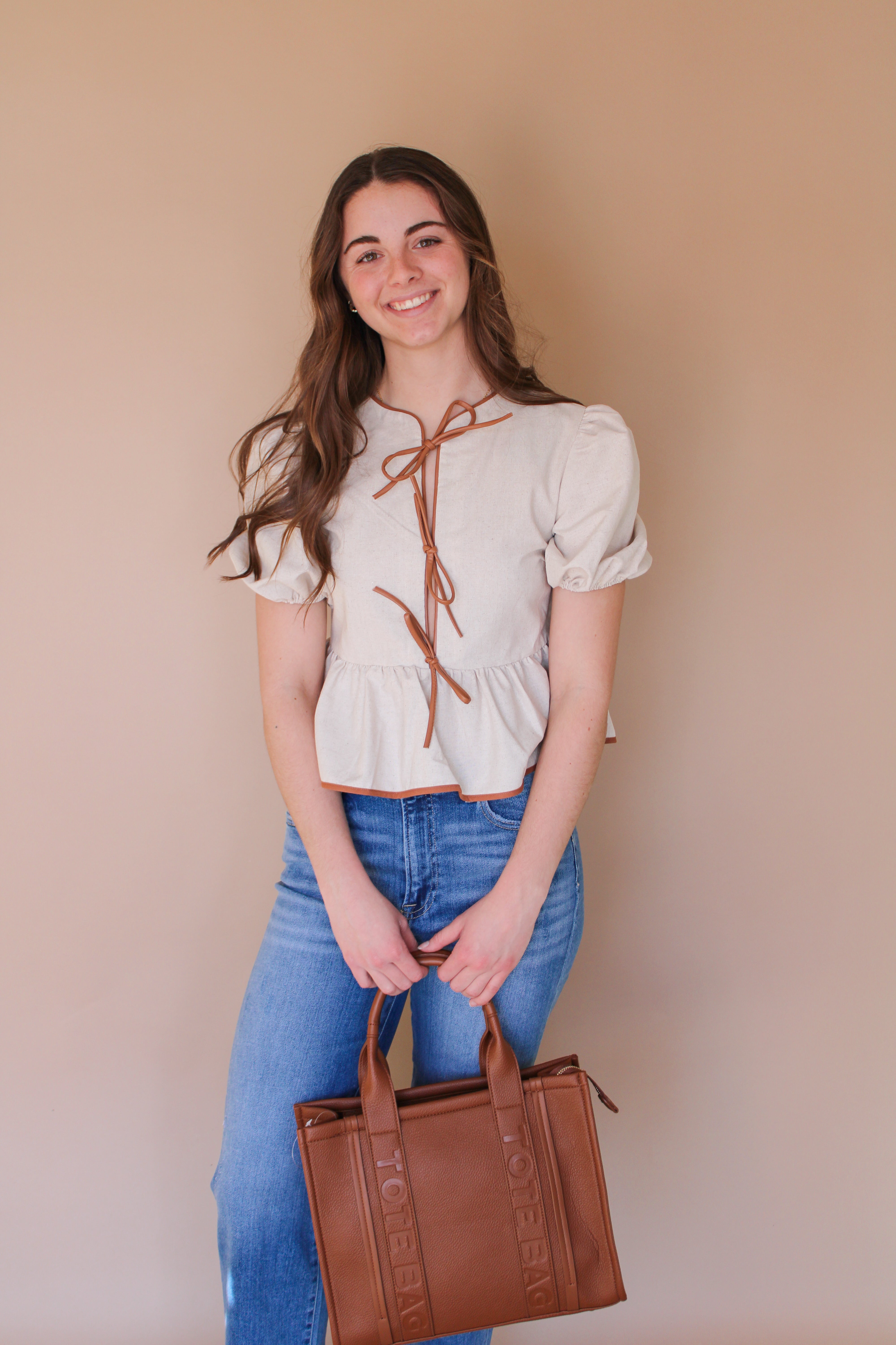 CANNON RIBBON TIE PEPLUM TOP BY IVY & CO