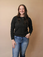 Meet your new wardrobe MVP—the Laney Boxy Long Sleeve! Crafted from a luxe blend of 95% pima cotton and 5% spandex, this soft black essential delivers comfort that actually moves with you. Rock it solo for effortless cool, or layer it under everything for that perfectly put-together vibe. Whether you're keeping it casual or dressing it up, this boxy beauty is about to become your go-to piece.