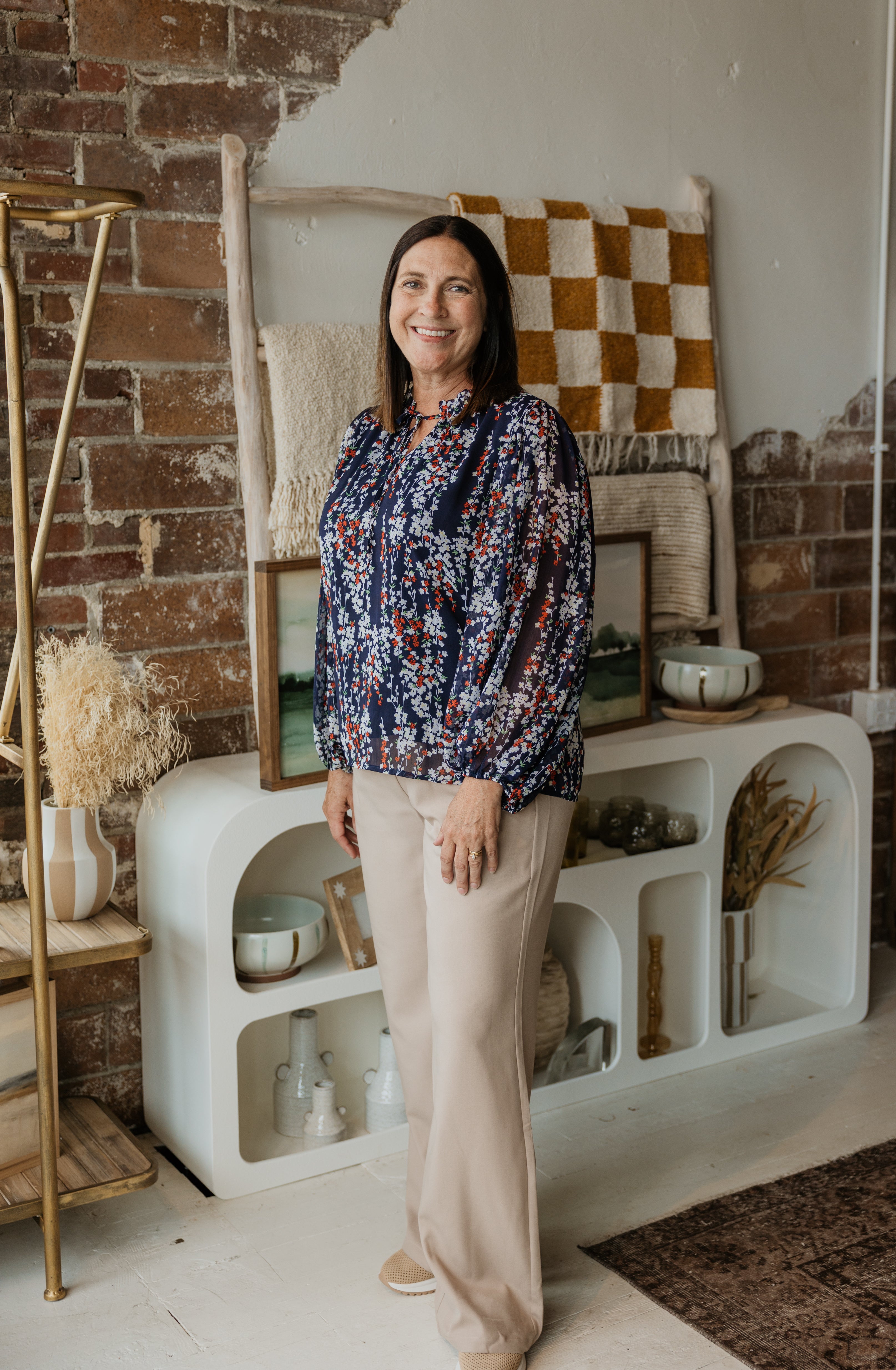 WILLA NAVY BLOUSE WITH FRONT TIE DETAIL