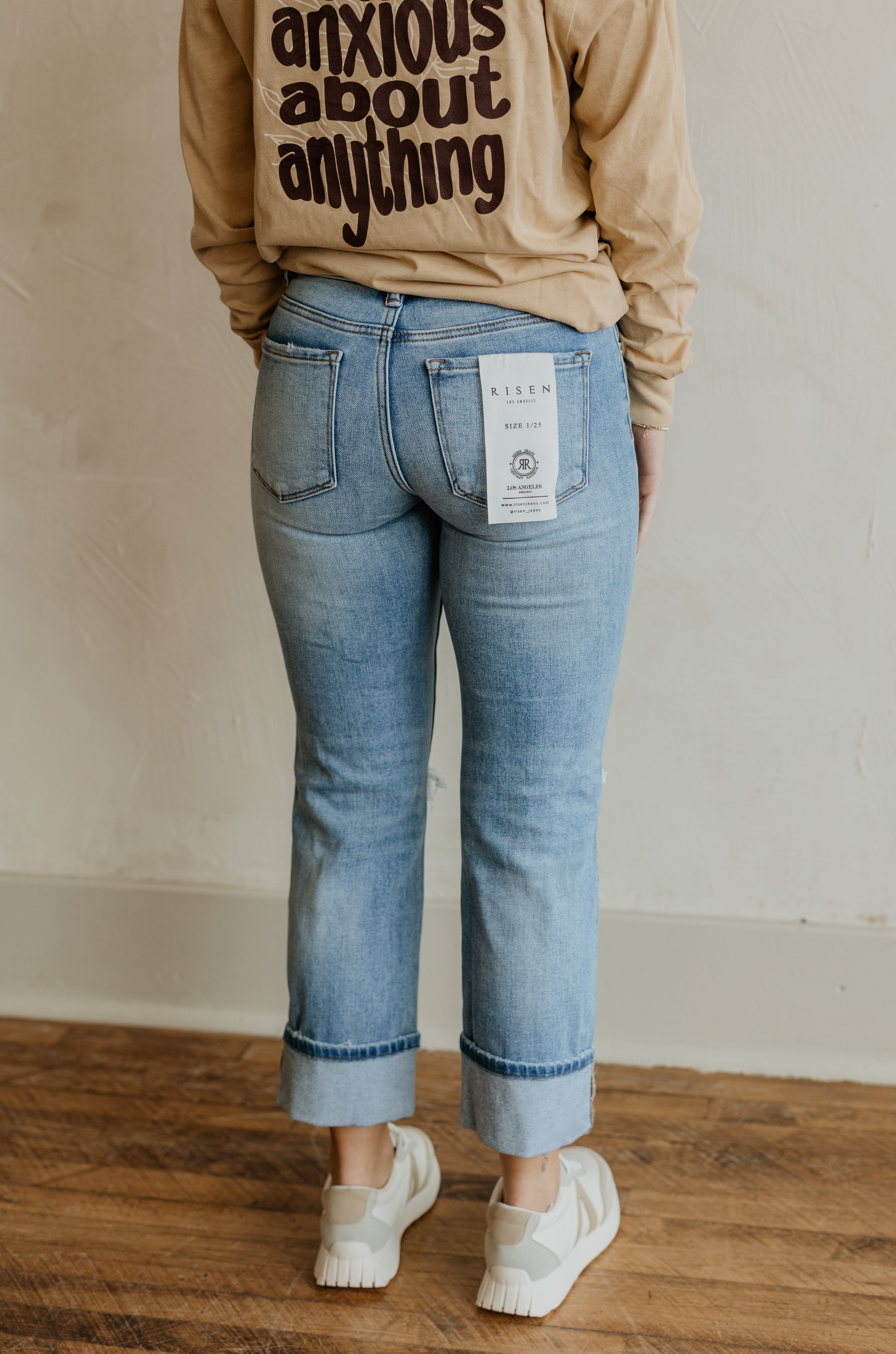 Meet the jean you've been dreaming of: the ALISA Tummy Control Mid Rise Crop Cuffed Jean. With its playful cropped length and trendy cuffed hem, it flatters every step you take. The mid-rise design offers comfy tummy control, blending style with a little extra confidence boost. Perfect for dressing up or down, these jeans bring fun and function to your everyday wardrobe.