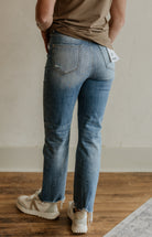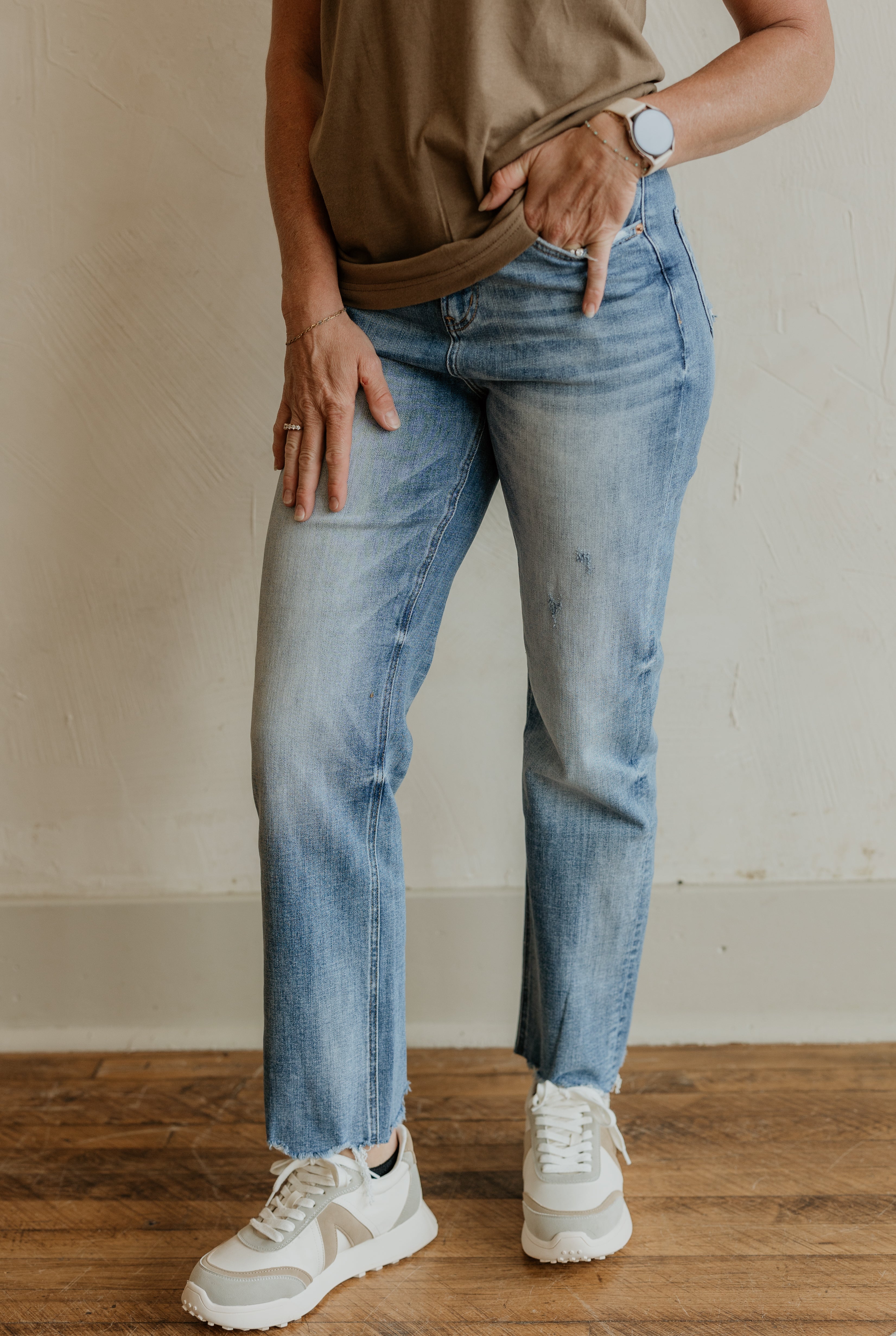KEANDREA HIGH RISE RAW HEM STRAIGHT JEANS