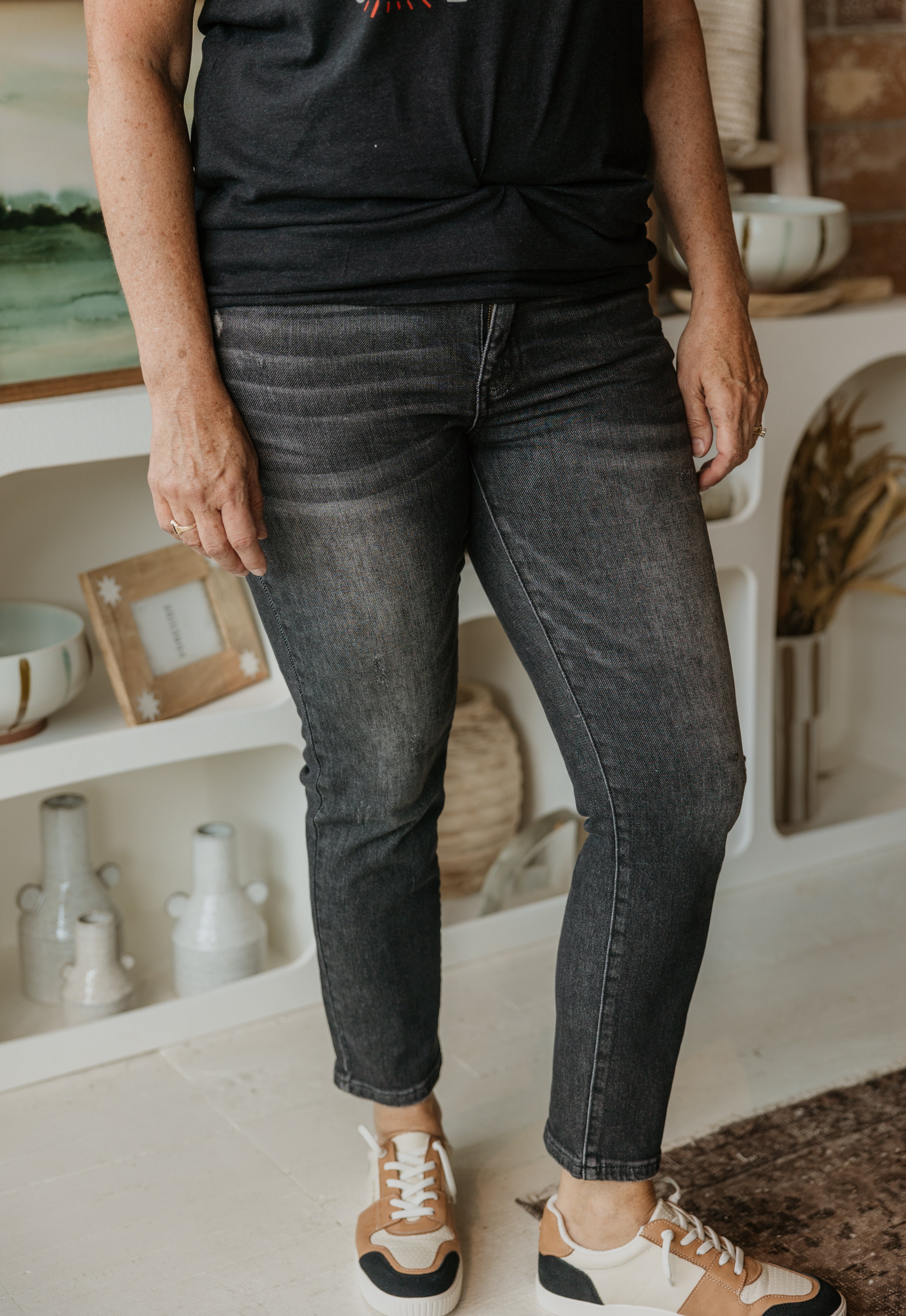 CRYSTA MID RISE SLIM FIT BLACK JEANS