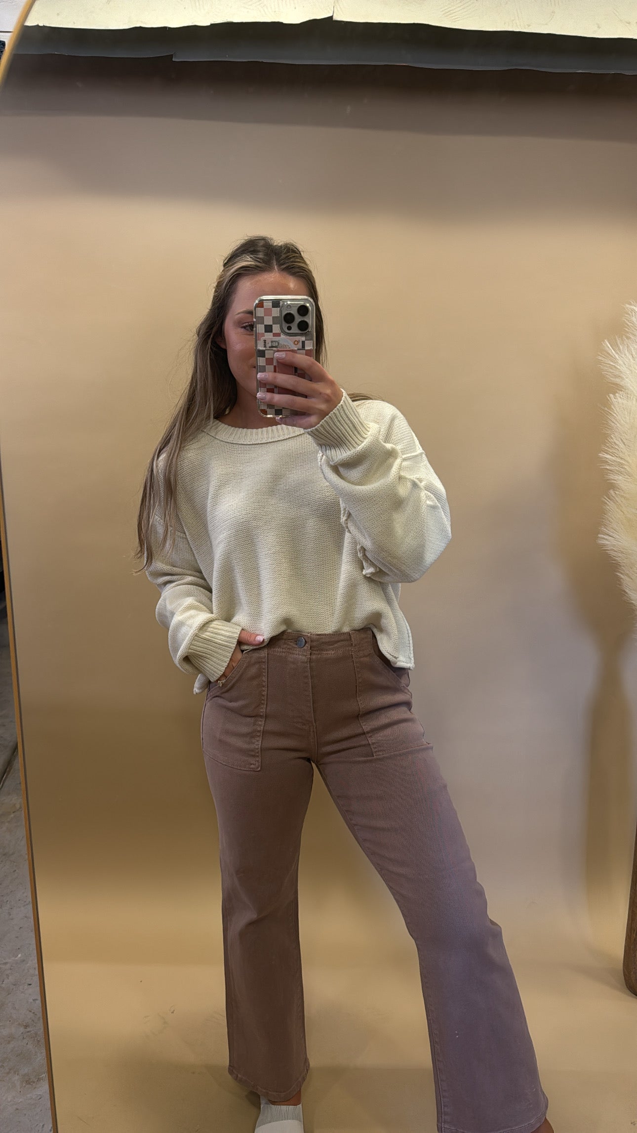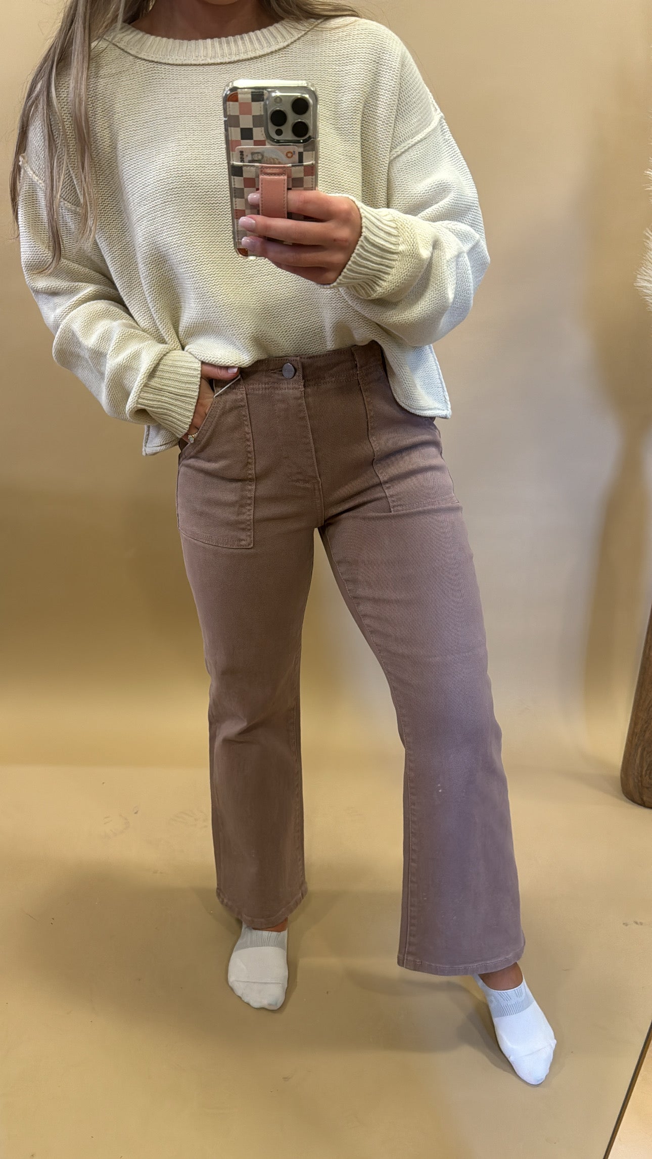 MAYLEE MAUVE PATCH POCKET ANKLE FLARE PANTS