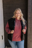 Looking for a vest that's short, black, and sassy? With cap sleeves, a button closure, and pocket front, this vest adds style and functionality to any outfit. Don't miss out on this versatile and fashionable piece!
