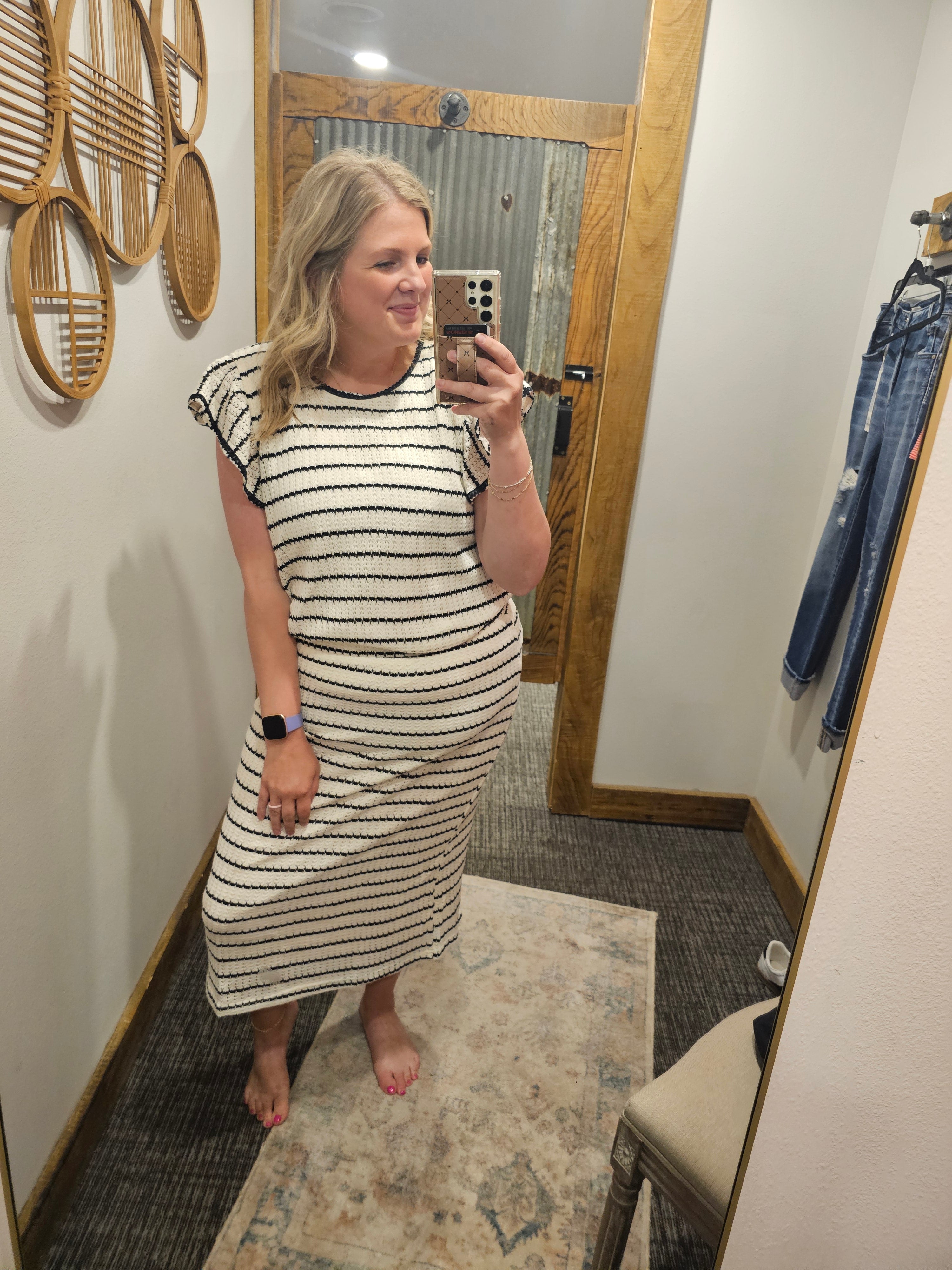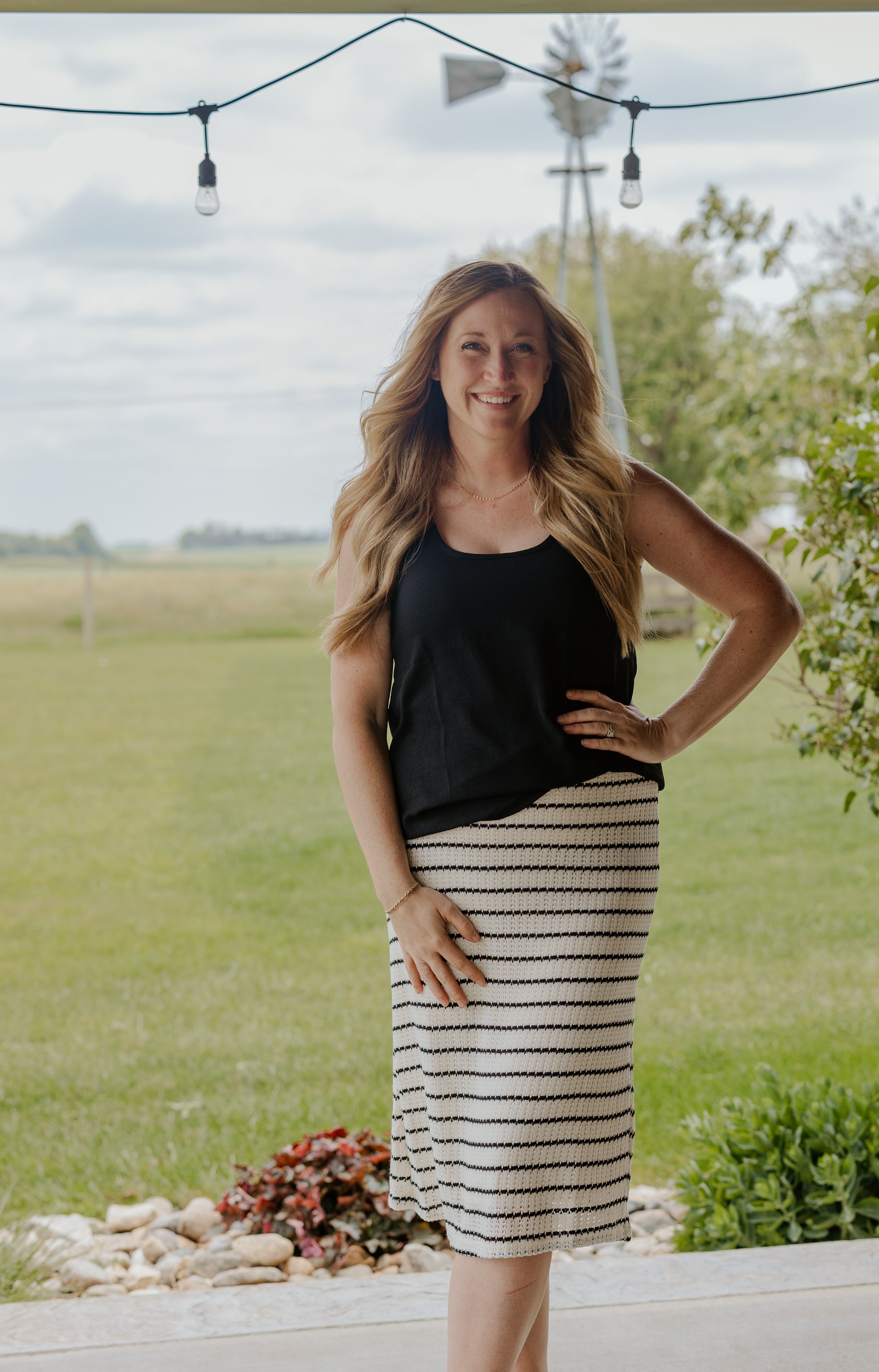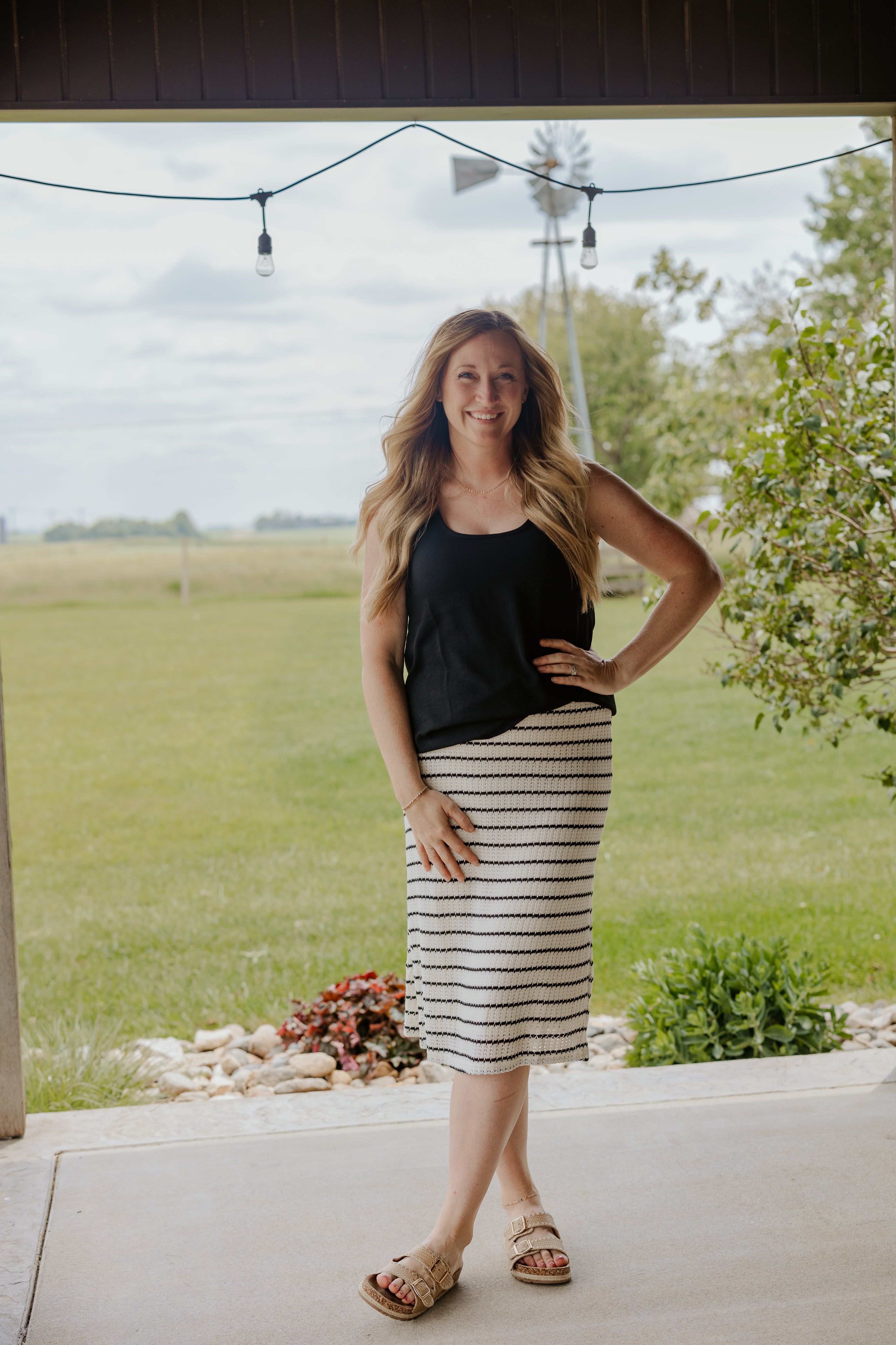 MILLIE REG/CURVY STRIPED MIDI SKIRT