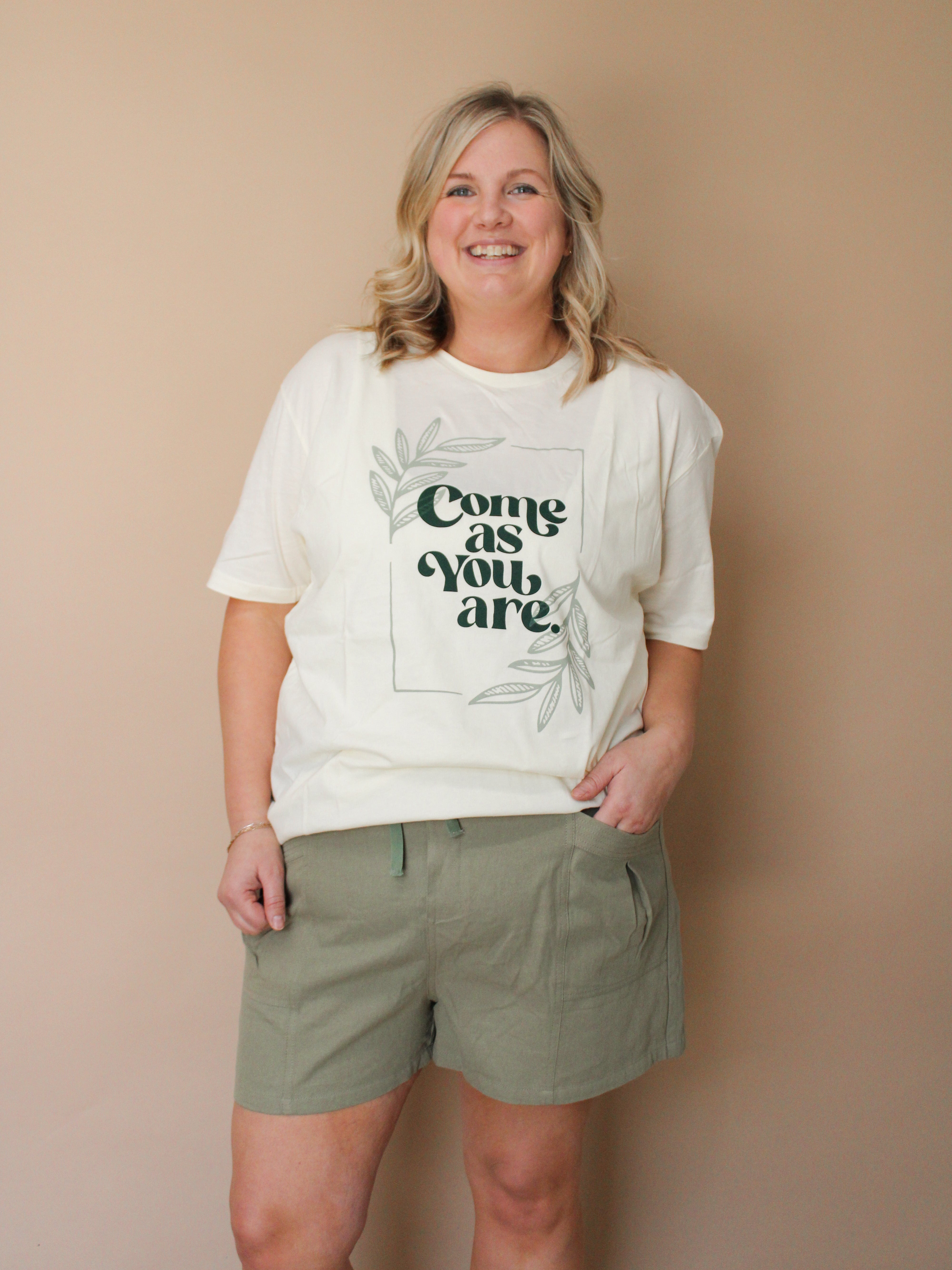 NIAOMI CURVY OLIVE DRAWSTRING SHORTS
