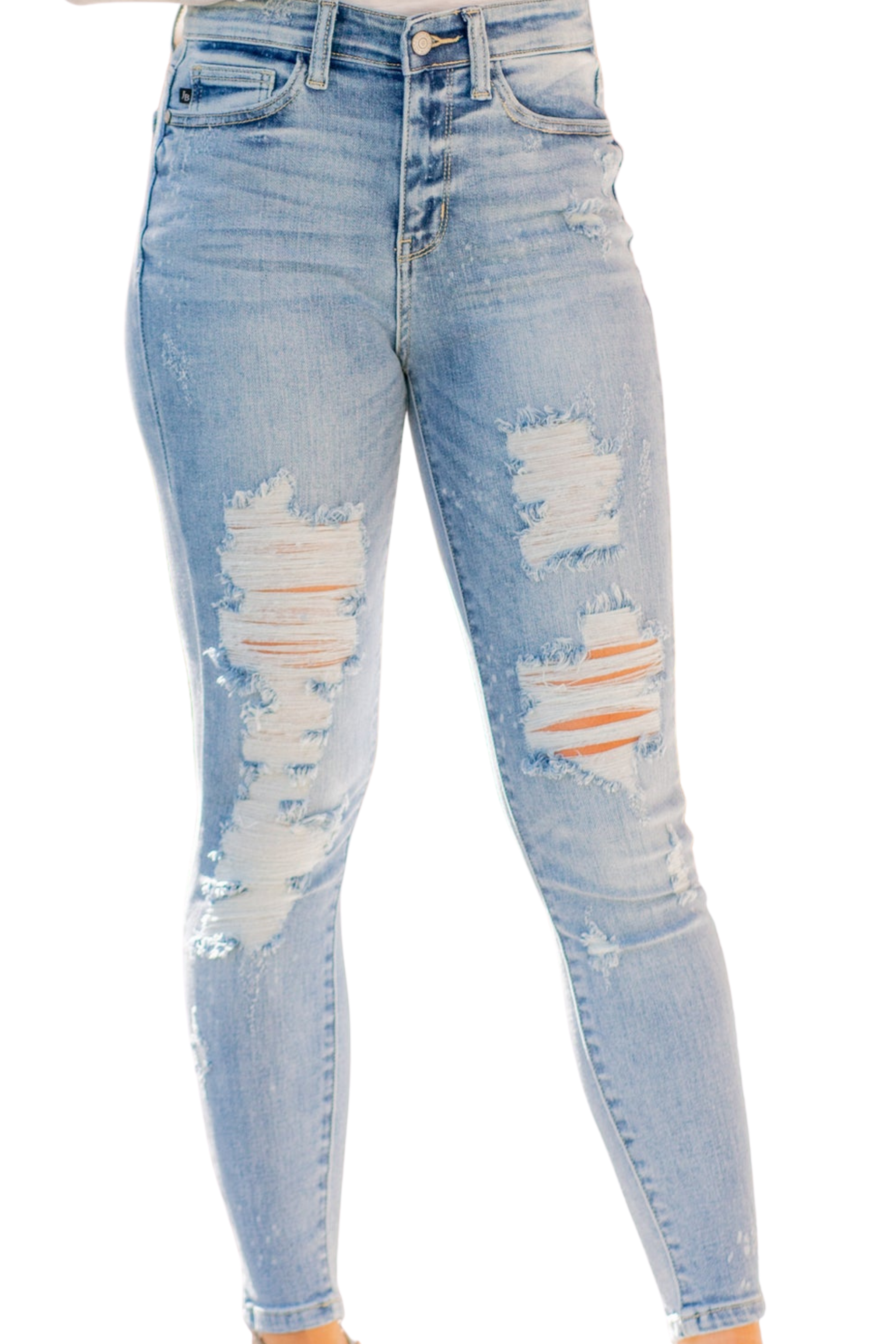 CURVY JUDY BLUE LIGHT WASHED DISTRESSED DENIM