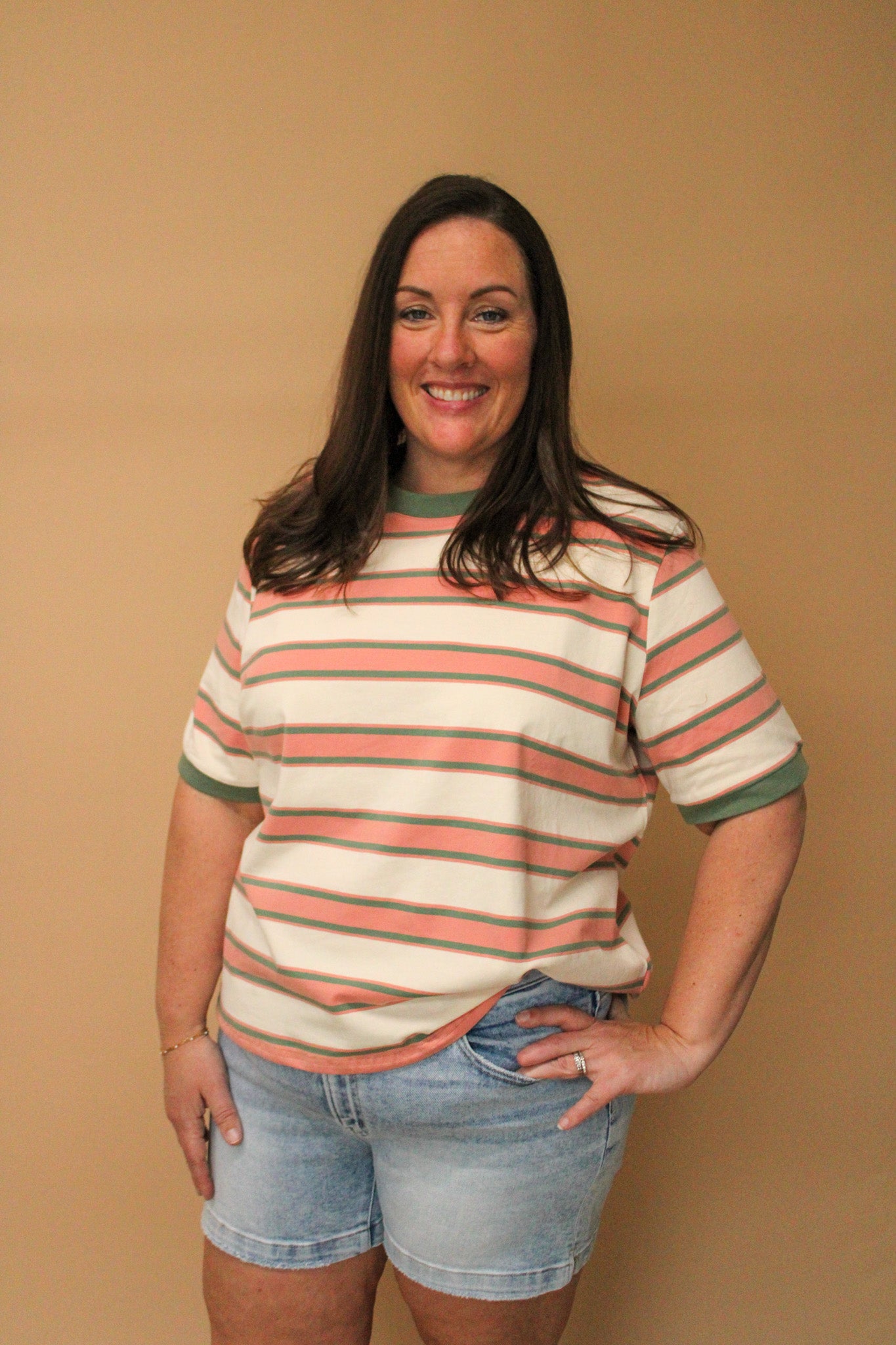 TAYLYN REG/CURVY STRIPED PULLOVER TOP