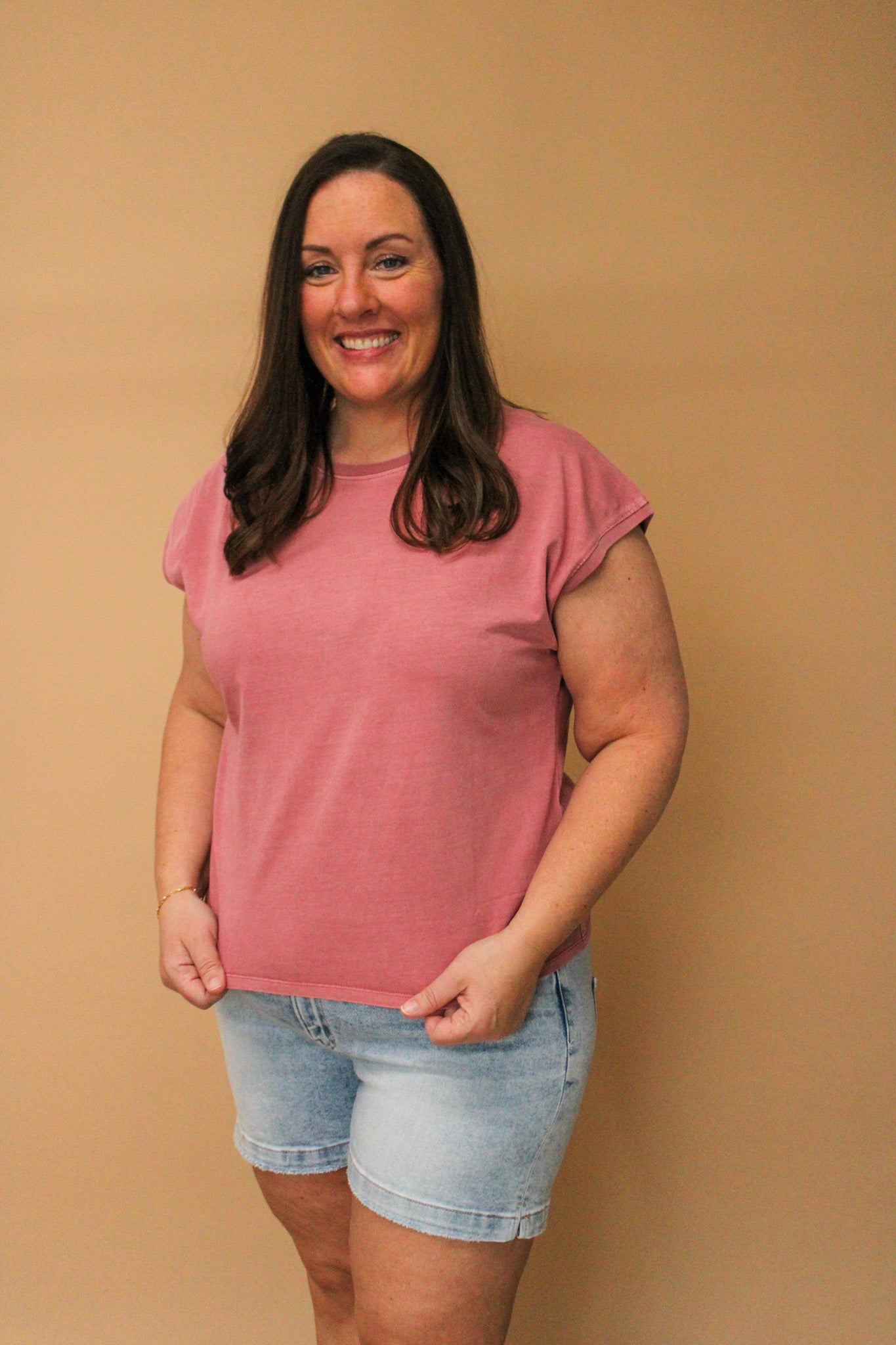 HANNAH CURVY BASIC WASHED CROPPED CAP SLEEVE