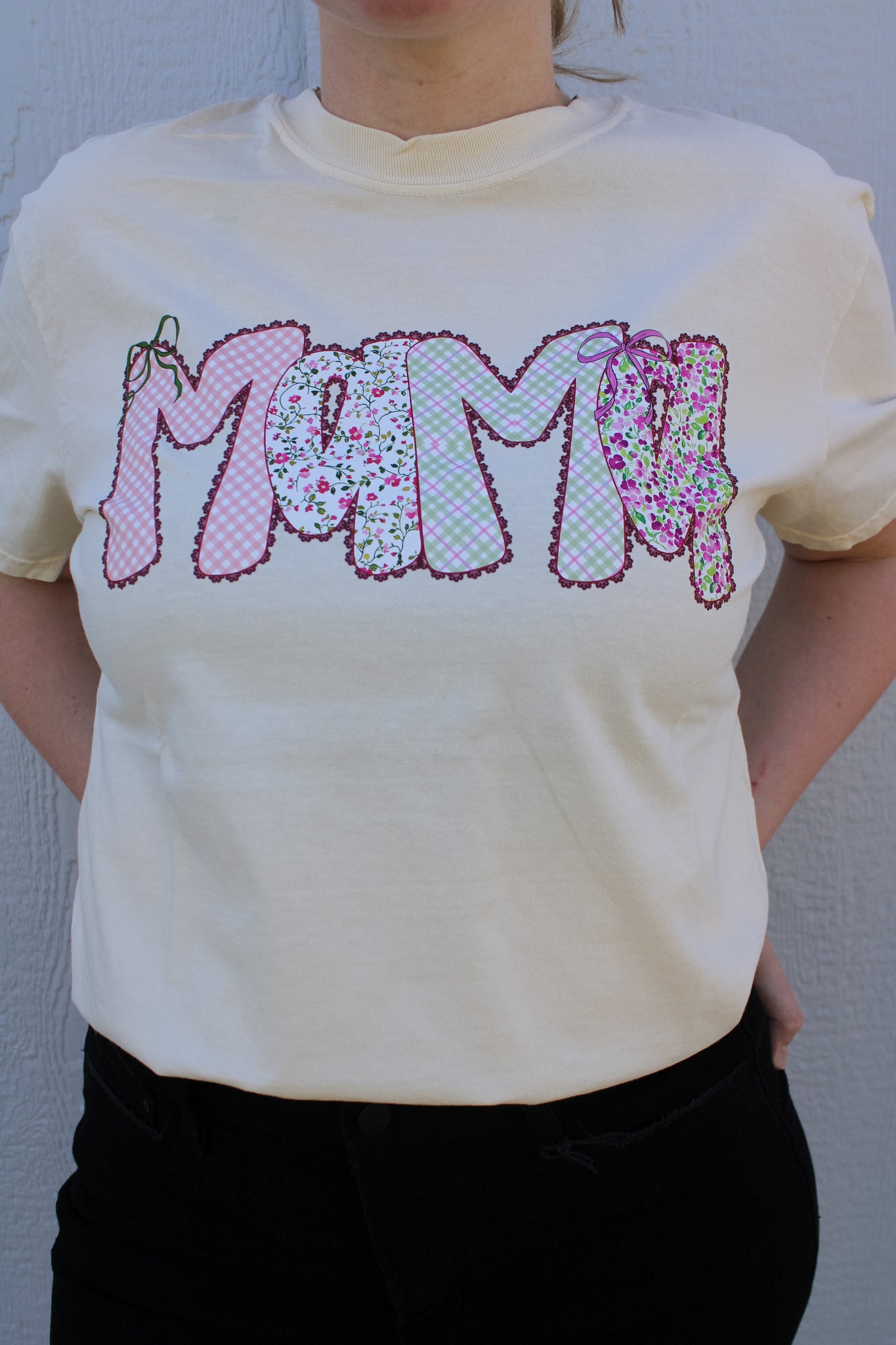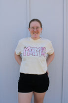 Celebrate motherhood in style with this charming graphic tee featuring delicate floral bubble text spelling "MAMA." Printed on a crisp ivory Comfort Colors shirt, this relaxed-fit essential offers the perfect blend of comfort and sentiment. The soft, breathable fabric makes it ideal for everyday wear, whether you're running errands or spending quality time with loved ones. Available in regular and curvy sizing to flatter every figure. A meaningful piece that honors the strength and beauty of motherhood.