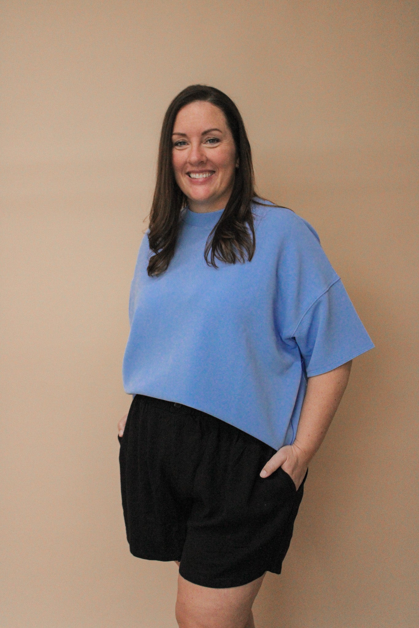 Elevated essentials meet everyday comfort in this ribbed round neck tee. Crafted from quality ribbed knit fabric, it features a flattering waist band that defines your silhouette while maintaining a relaxed fit. The structured ribbed texture adds dimension and durability, perfect for layering or wearing solo. Approximate measurements from Small: 23" body length, 49" bust. A versatile staple designed for both regular and curvy frames.