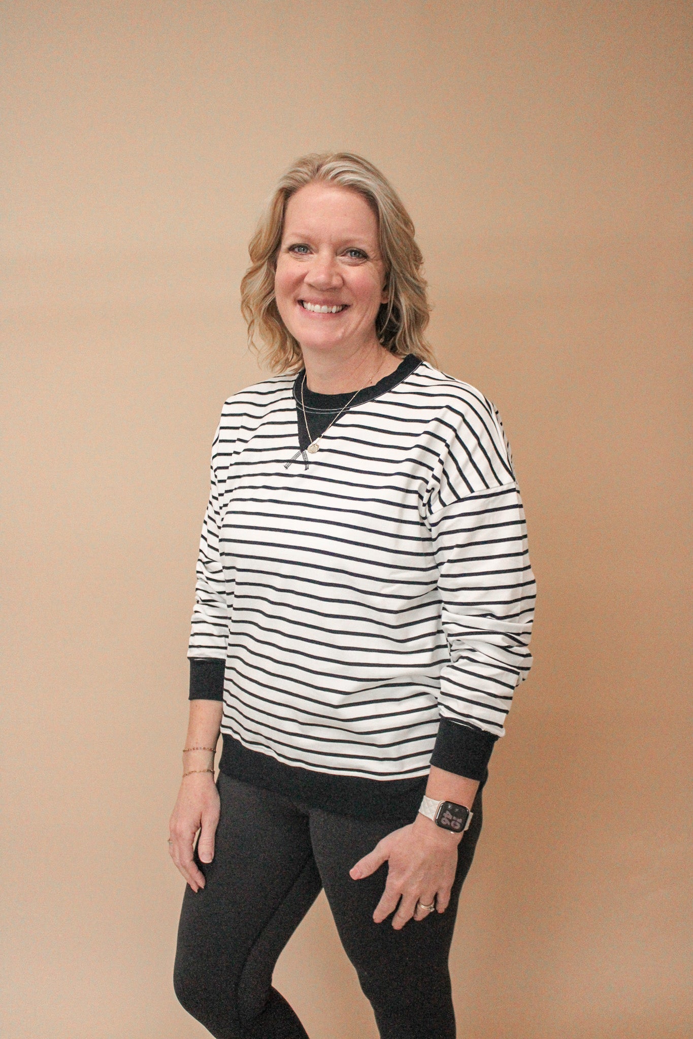 TAYLYN REG/CURVY STRIPED PULLOVER TOP