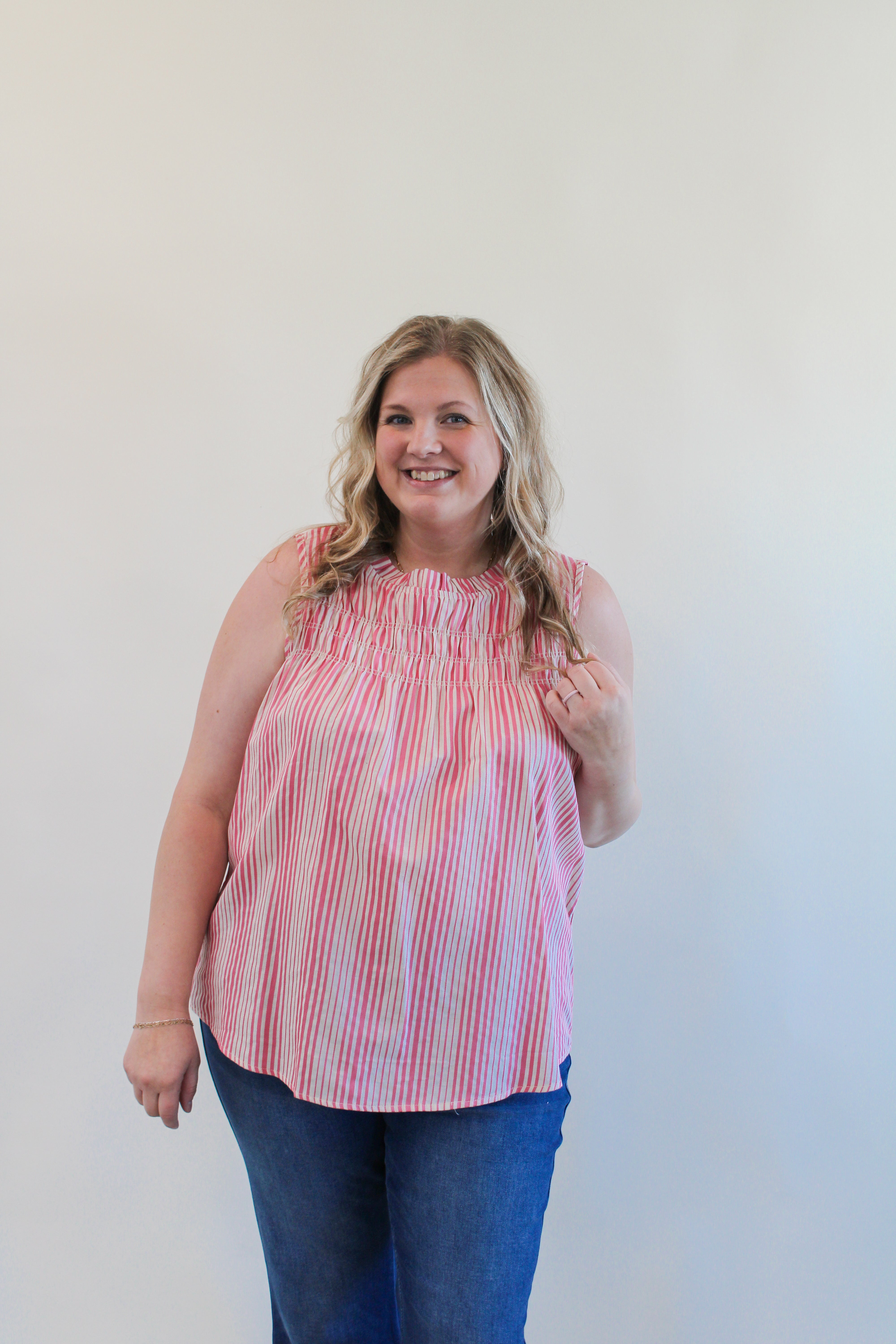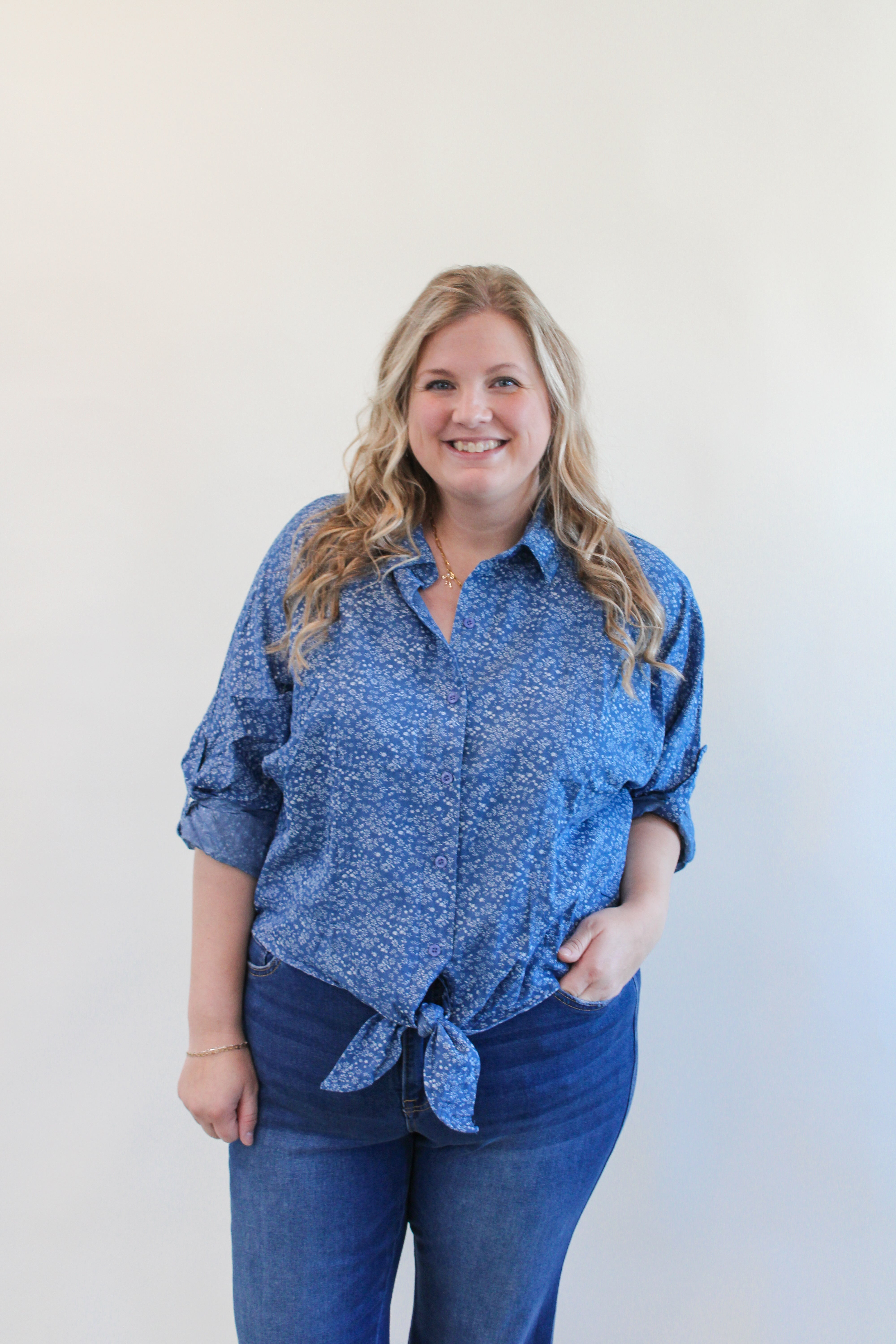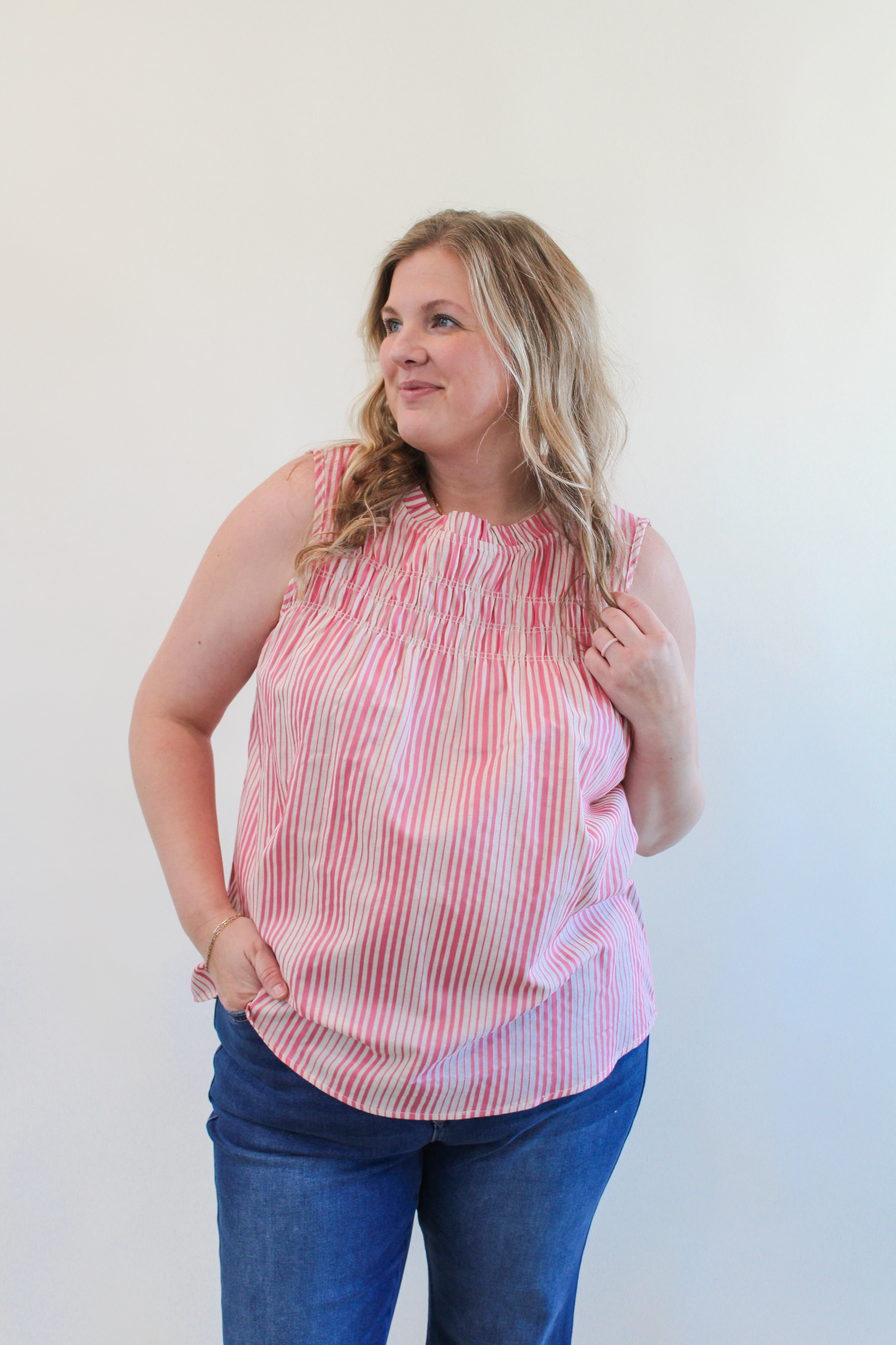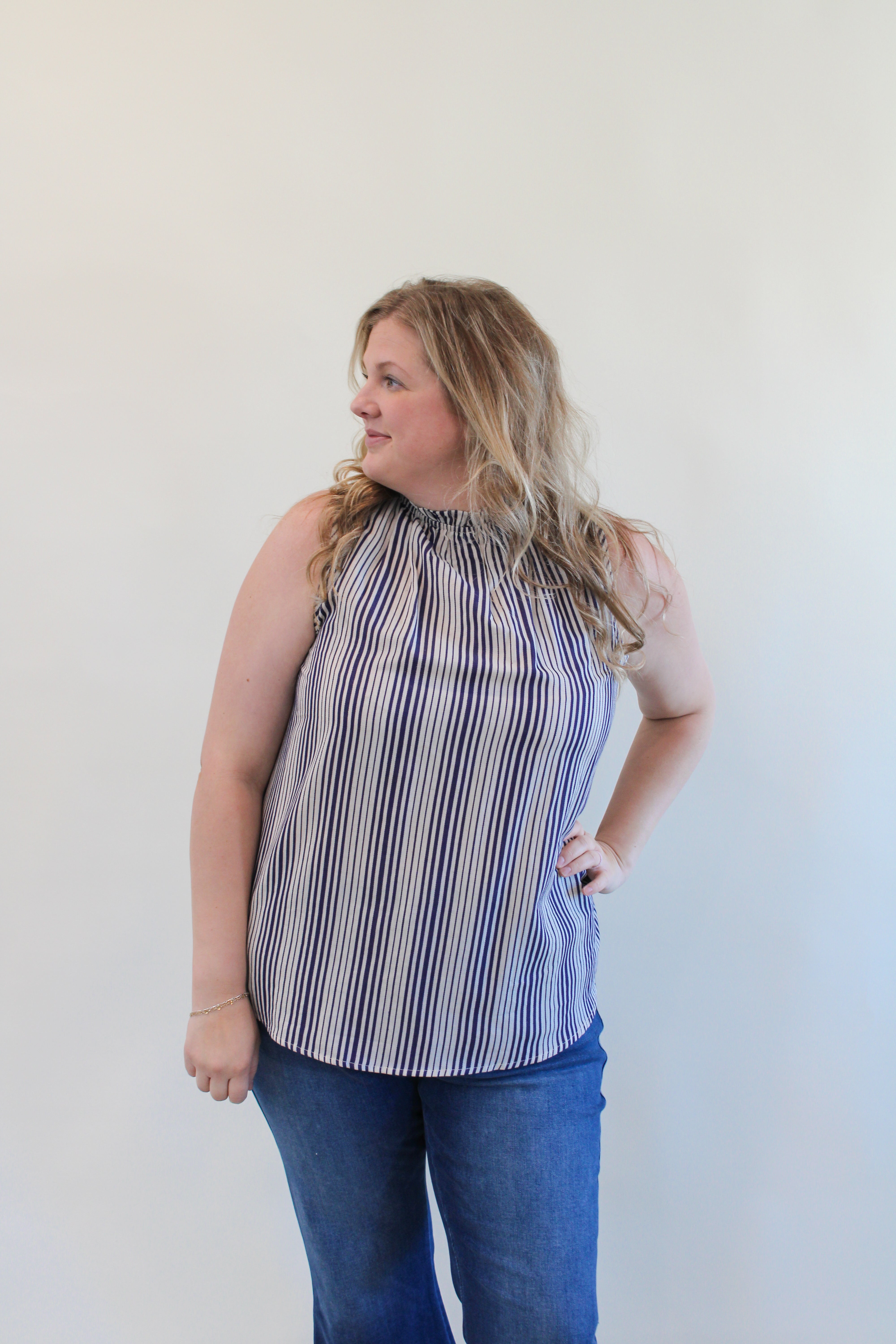 LILA CURVY PINSTRIPE BUTTON DOWN