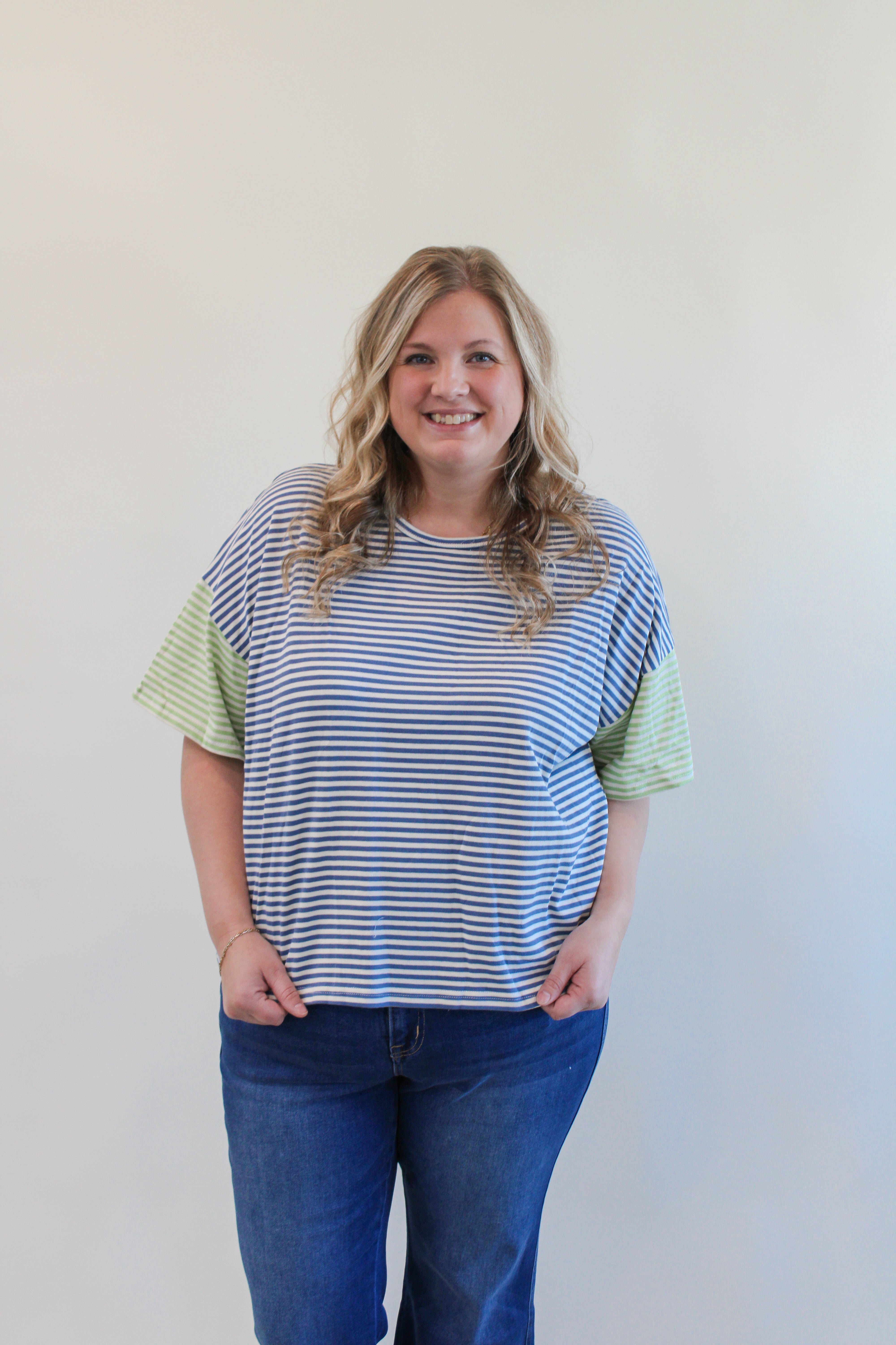 KIT CURVY STRIPED COLLAR KNIT TOP