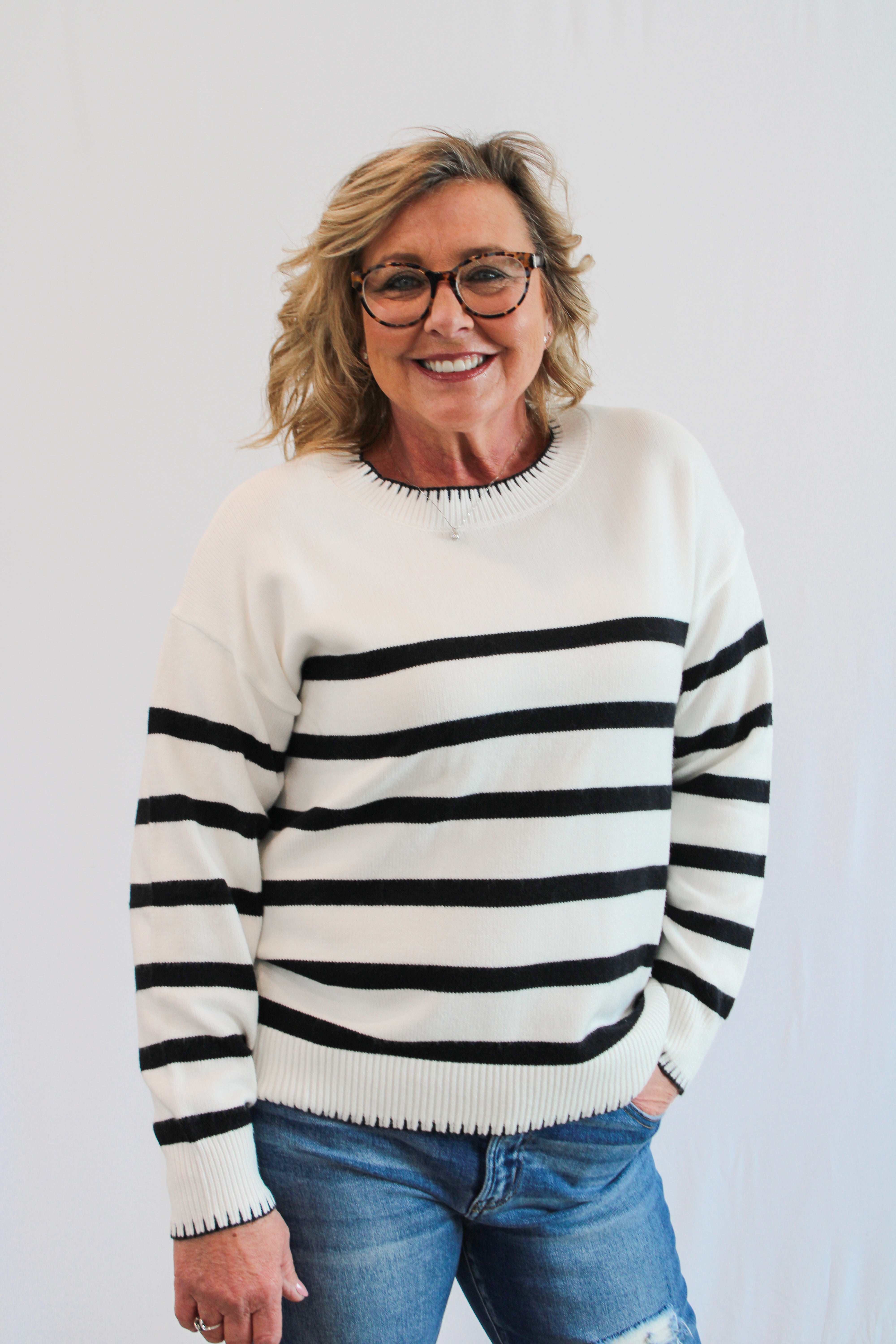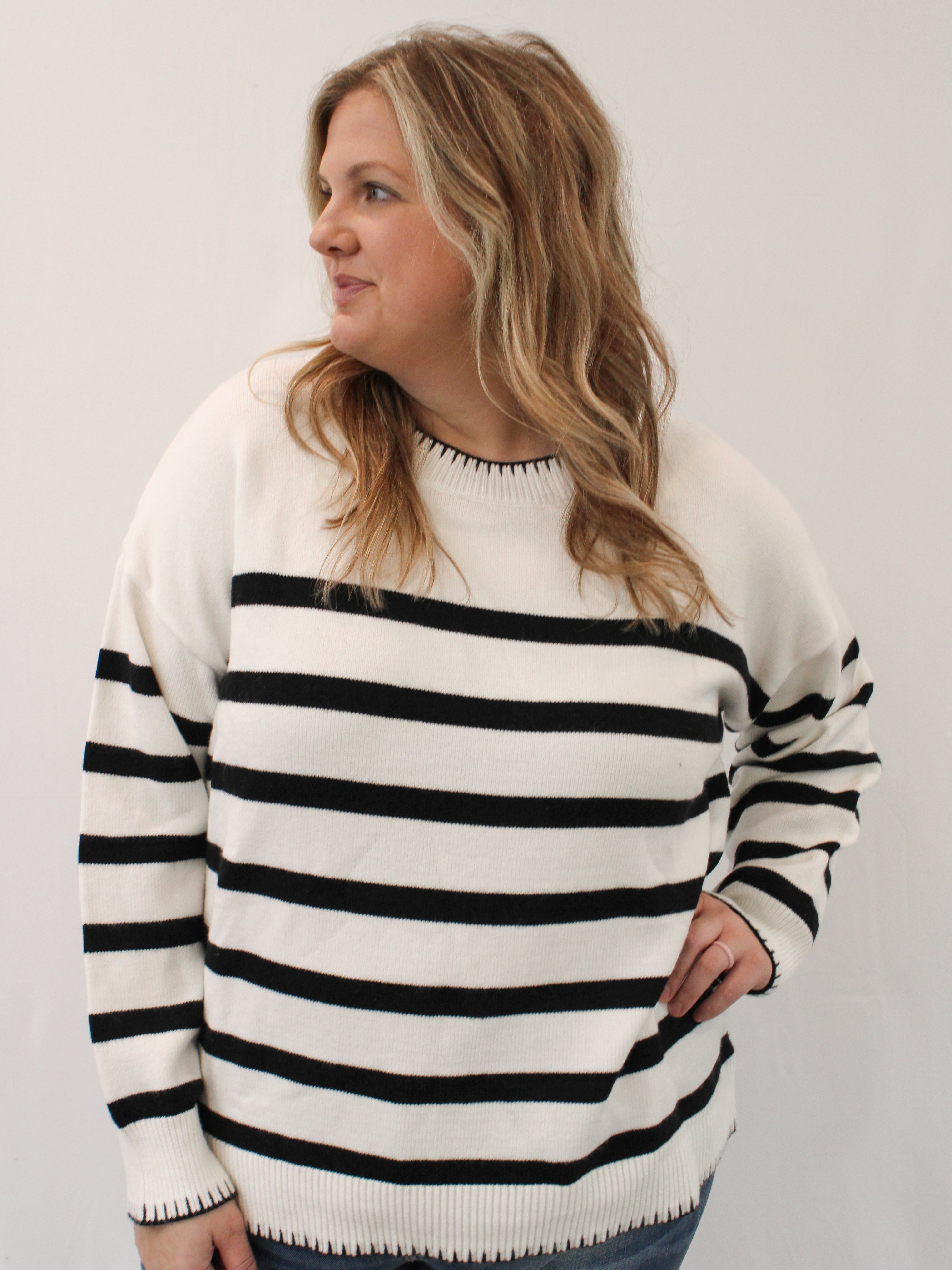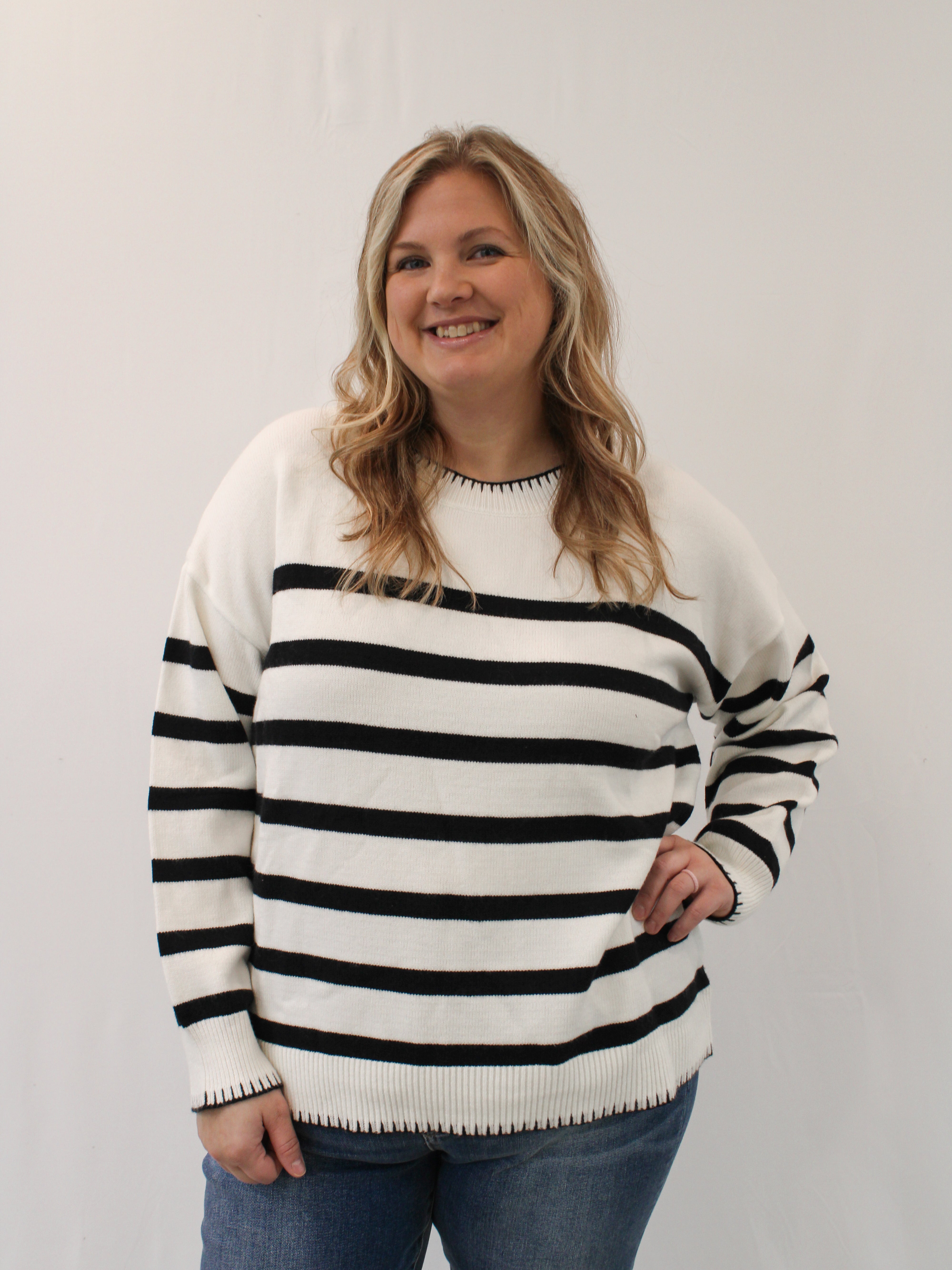 LILY REG/CURVY STRIPED KNIT SWEATER