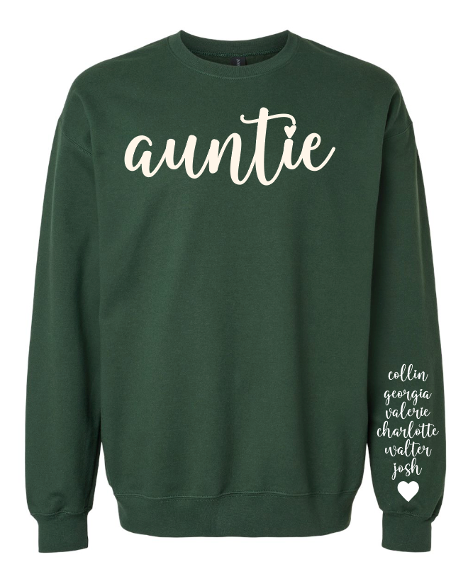 AUNTIE SCRIPT CREWNECK SWEATSHIRT | XMAS25