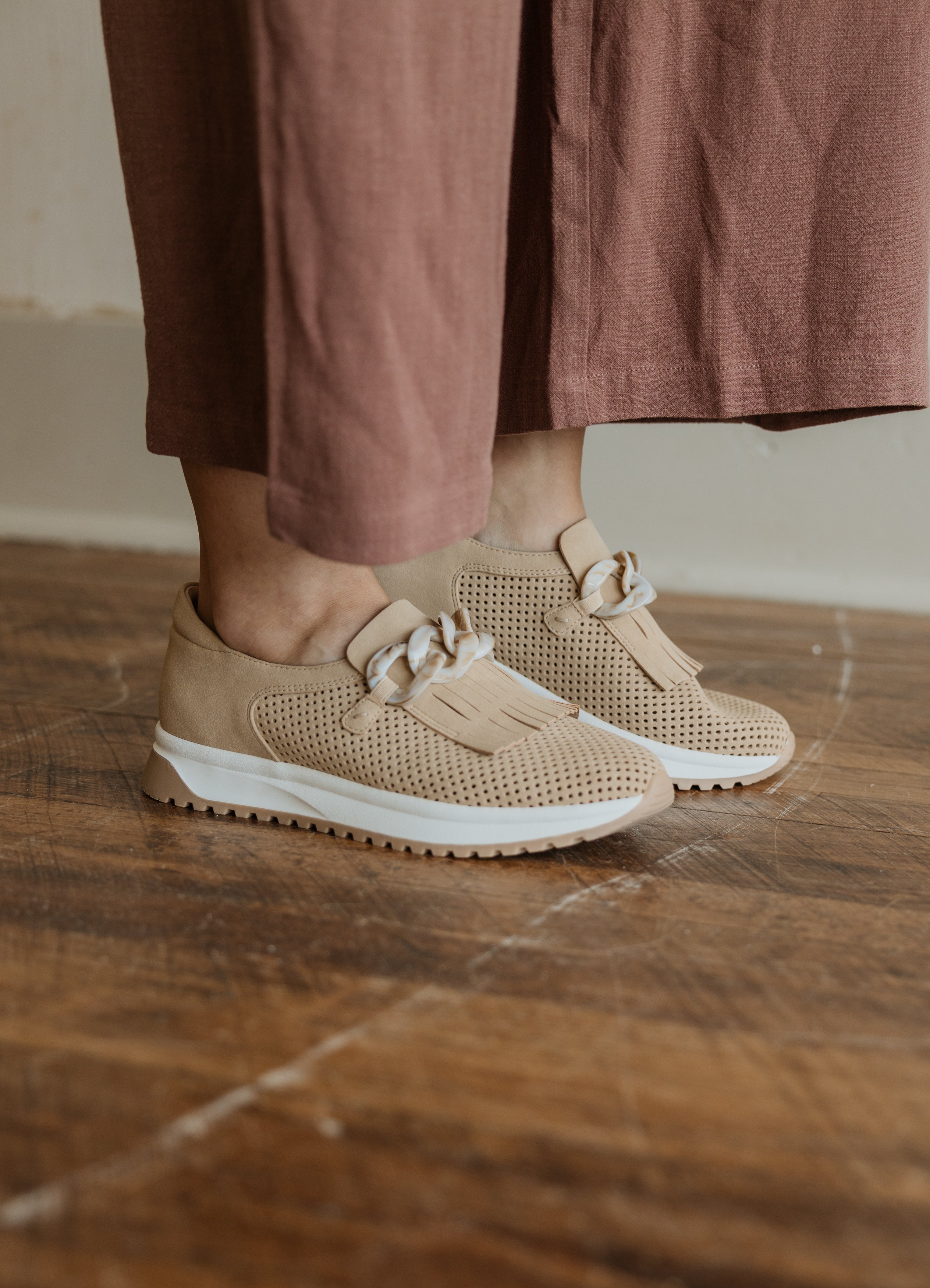 Meet Riska - an adorable sneaker that's sure to become your go-to favorite in no time! This charming loafer is designed with a perforated vamp and chunky chain hardware. The lightweight construction and removable insole make Riska the perfect choice for those who want to make a fashion statement while feeling light on their feet.