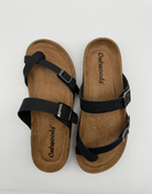 Get ready to step up your shoe game with the TULLY BLACK SANDAL. This flatform sandal features a black leather design, making it versatile for any outfit. Plus, with its birk dupe inspiration, you'll be comfortable and stylish all day long.