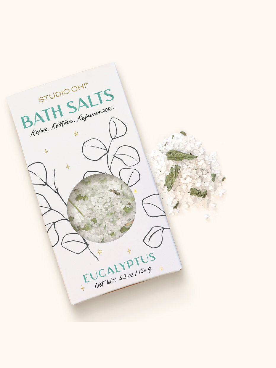 Enjoy a relaxing bath with Scented Bath Salts from Studio Oh! The artfully designed packets contain salts for one or two baths. The bath salts dissolve in warm water and provide a comforting soak, while the calming fragrances encourage relaxation and soothe the senses.