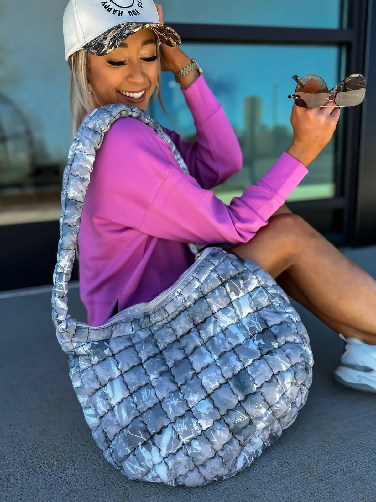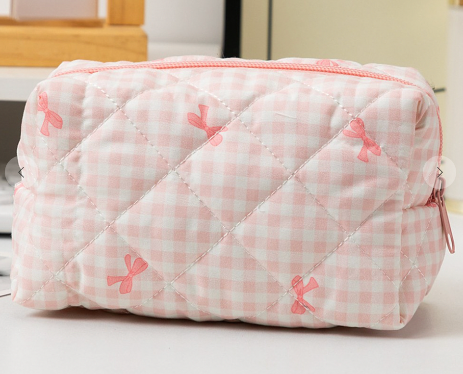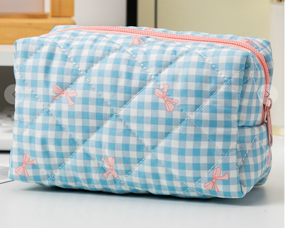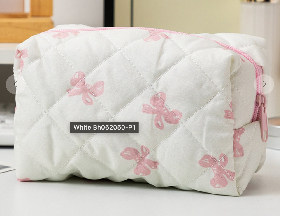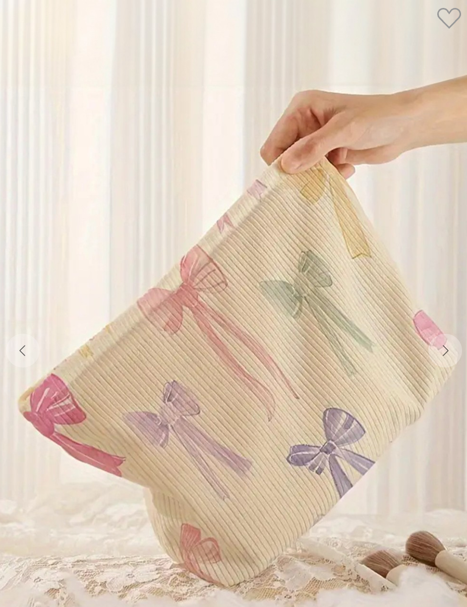 Bow Knot Print Zipper Corduroy Large Cosmetic Bag