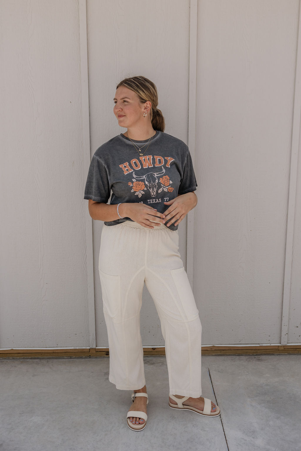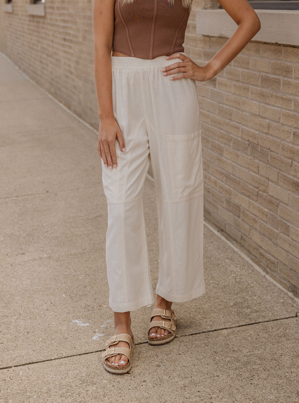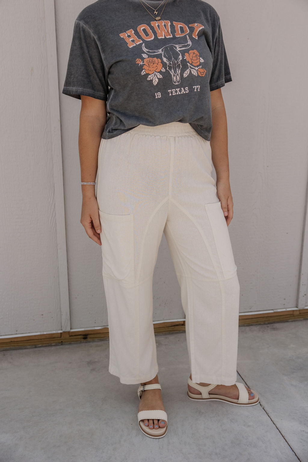 BRIELE CREAM LINEN TEXTURED WIDE LEG PANTS BY IVY & CO