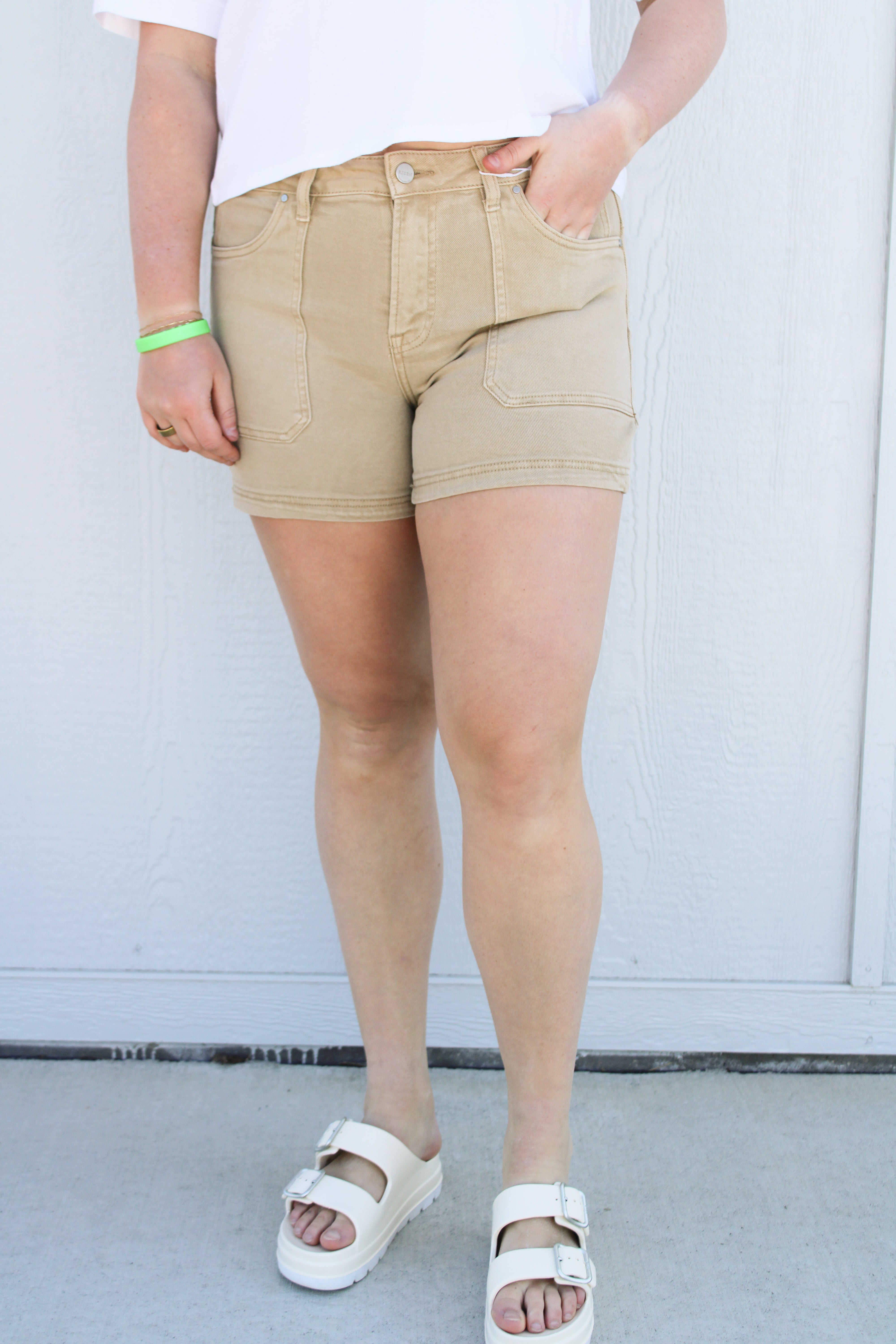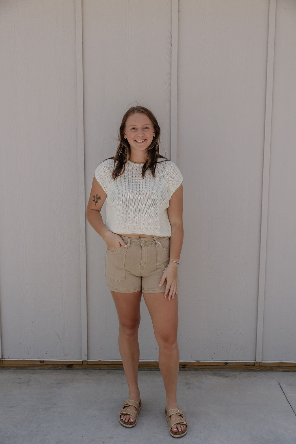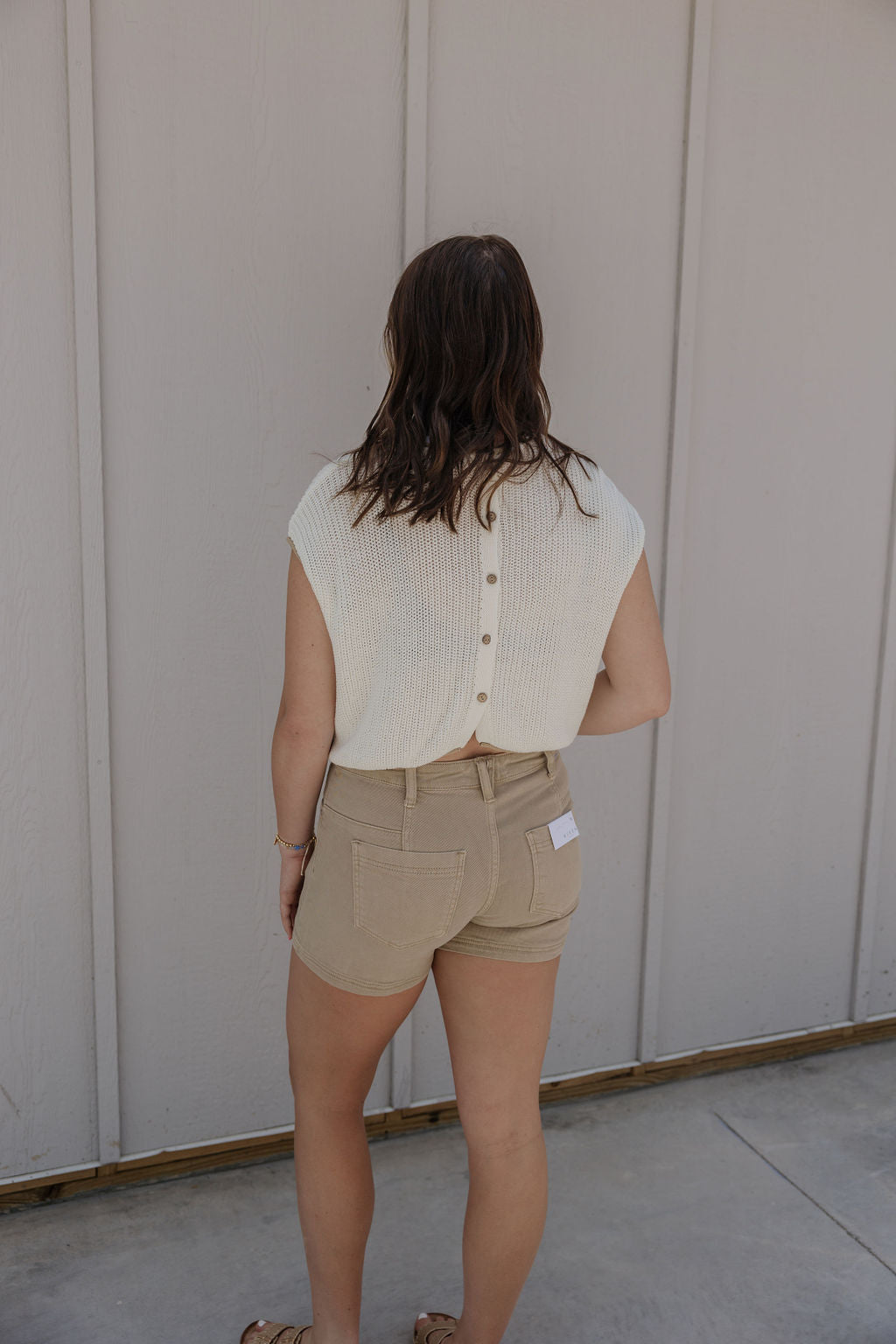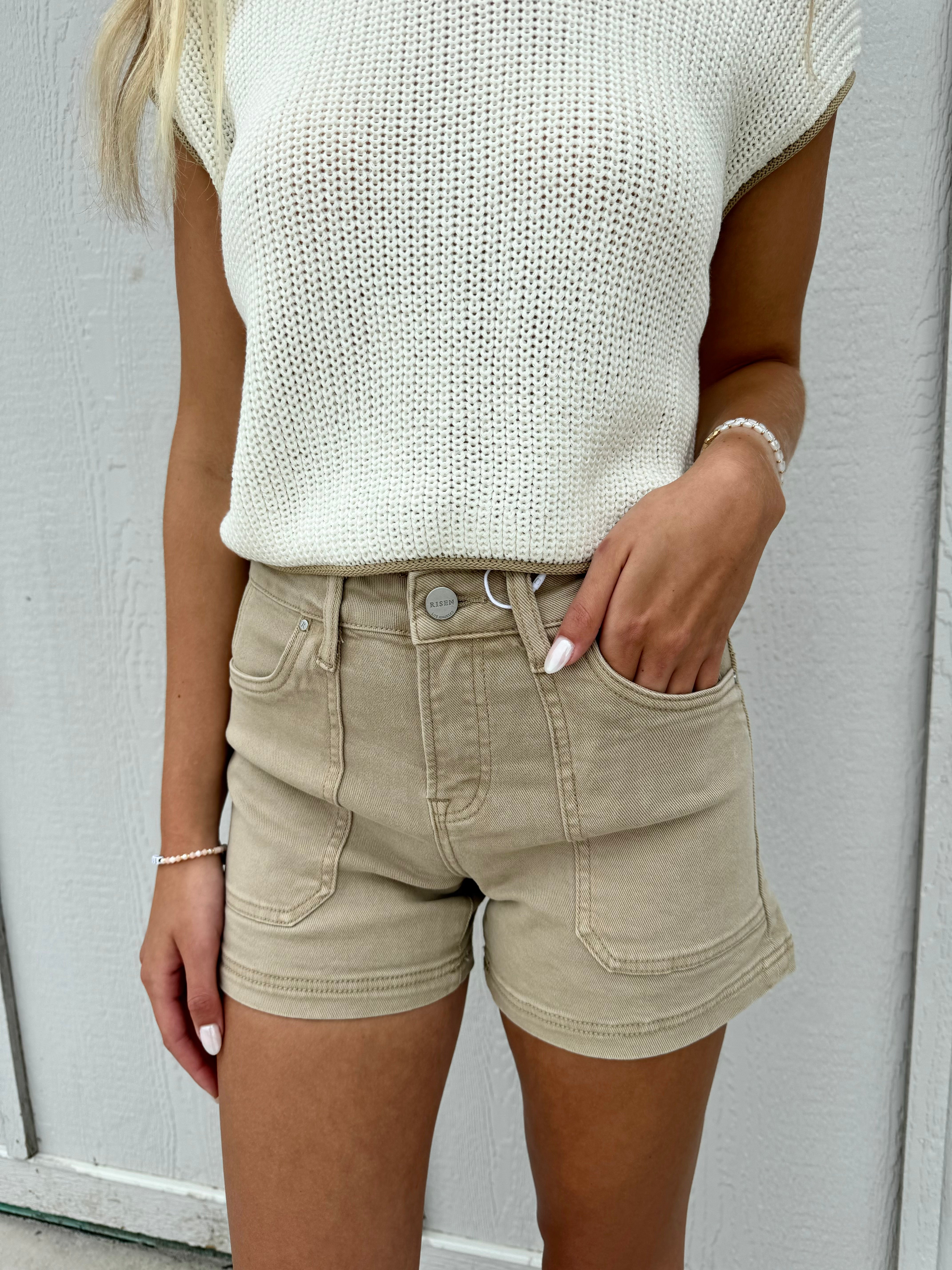 BAILY CREAM SHORTS WITH BROWN STITCHING BY IVY & CO