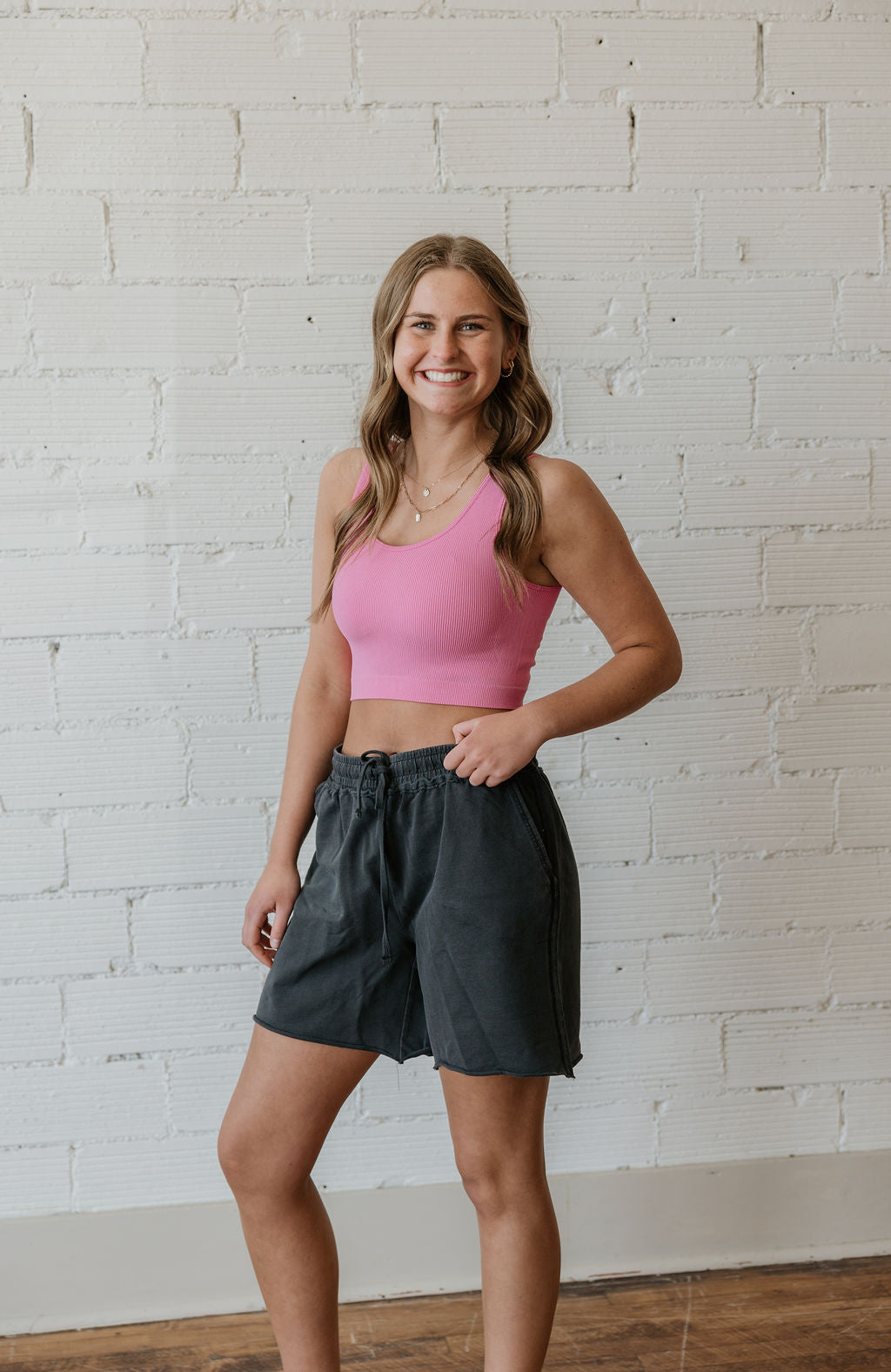 HAILIE BLACK LONGER COMFY SHORTS BY IVY & CO