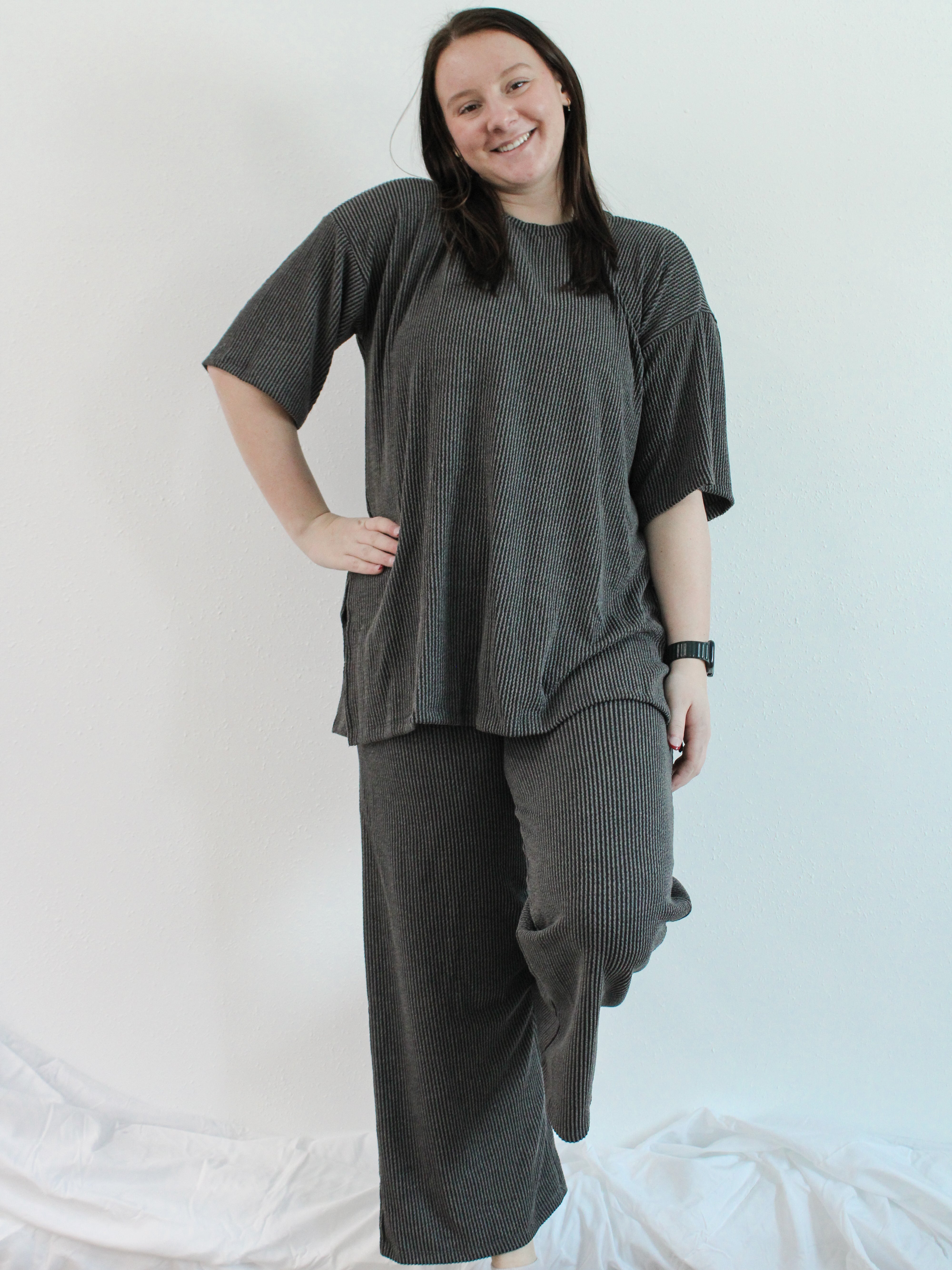 VEDA REG/CURVY RIBBED 2-PIECE LOUNGE SET BY IVY & CO