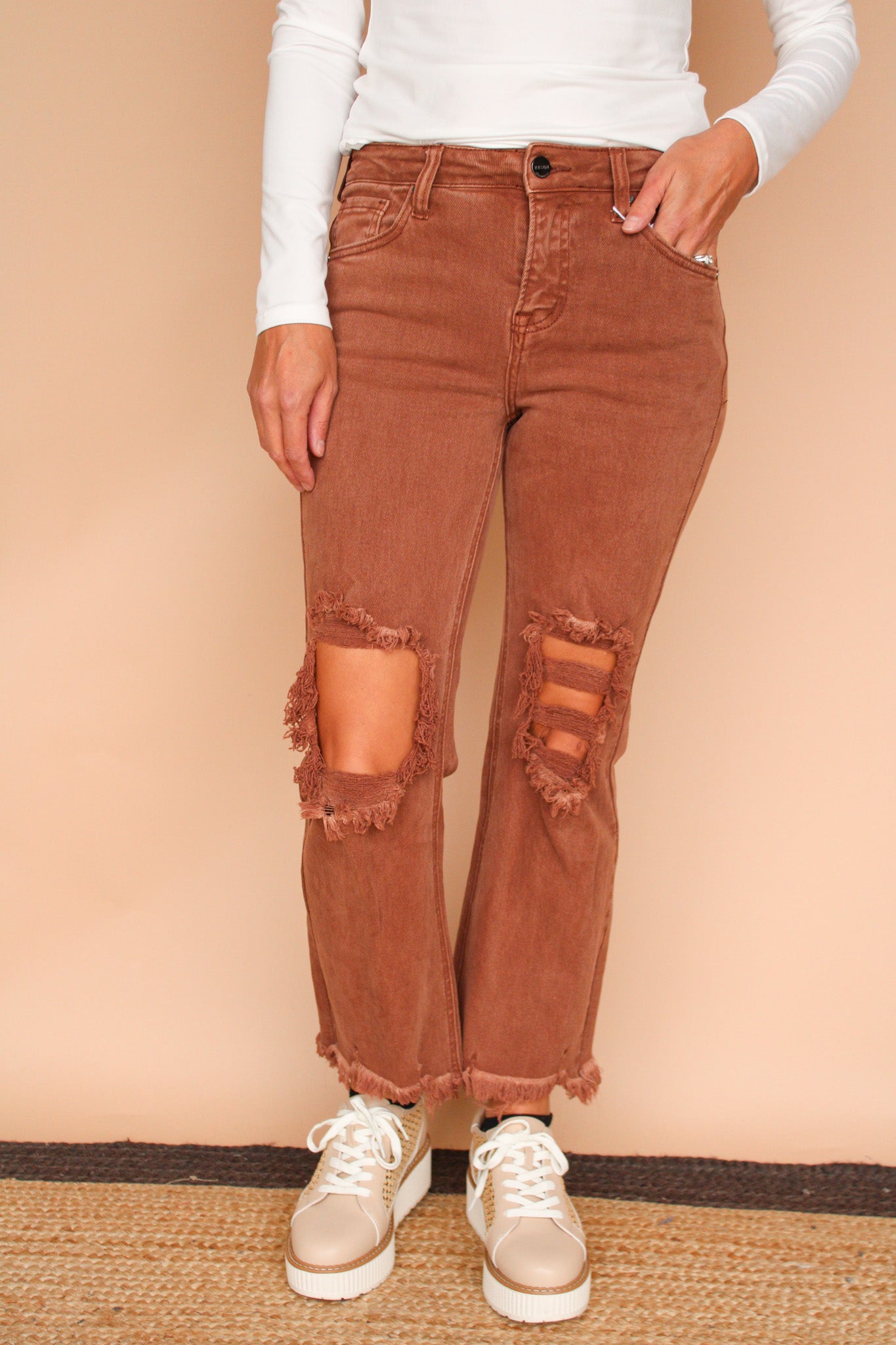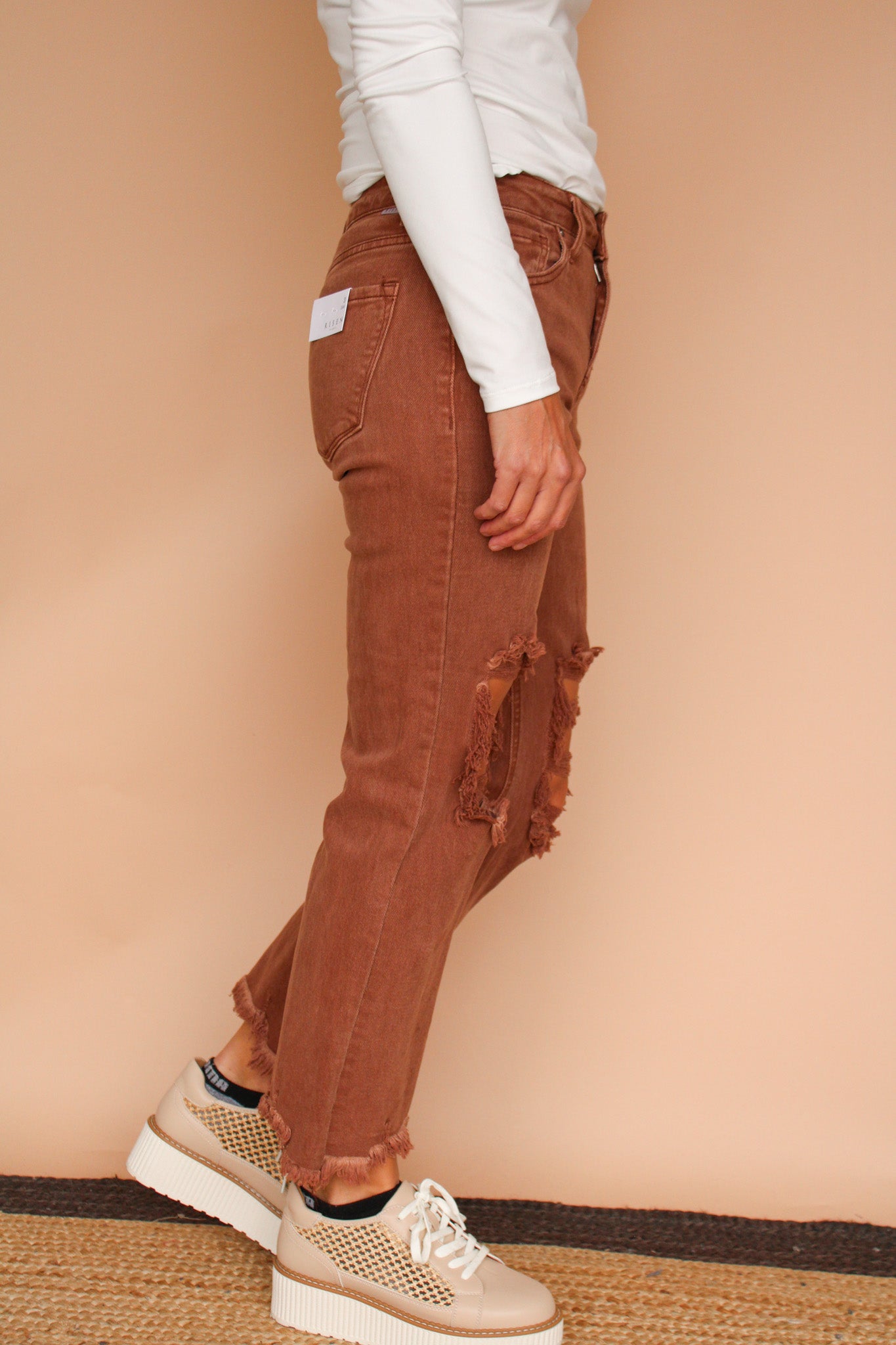 BRIANNA HIGH RISE DISTRESSED COLORED BOTTOMS 2 COLOR OPTIONS BY IVY & CO