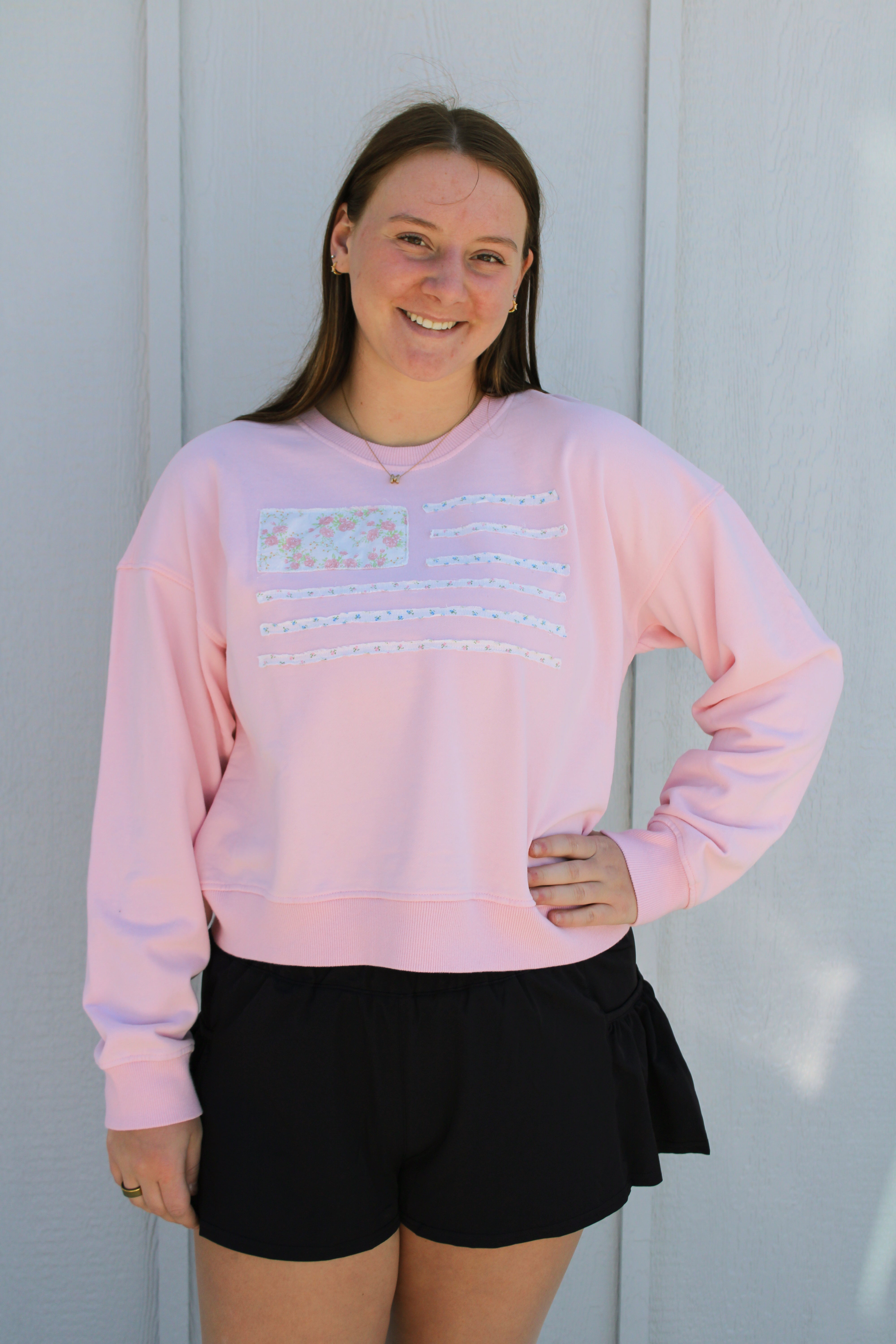 LIBERTY PATCHWORK FLAG CREWNECK SWEATSHIRT BY IVY & CO