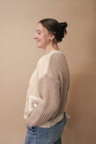 Add some whimsy to your wardrobe with our Knit two tone cardigan! Featuring playful flower blocks, this cozy cardigan is perfect for any occasion. Stay warm and stylish in this unique and fun piece. Don't miss out, grab yours now!