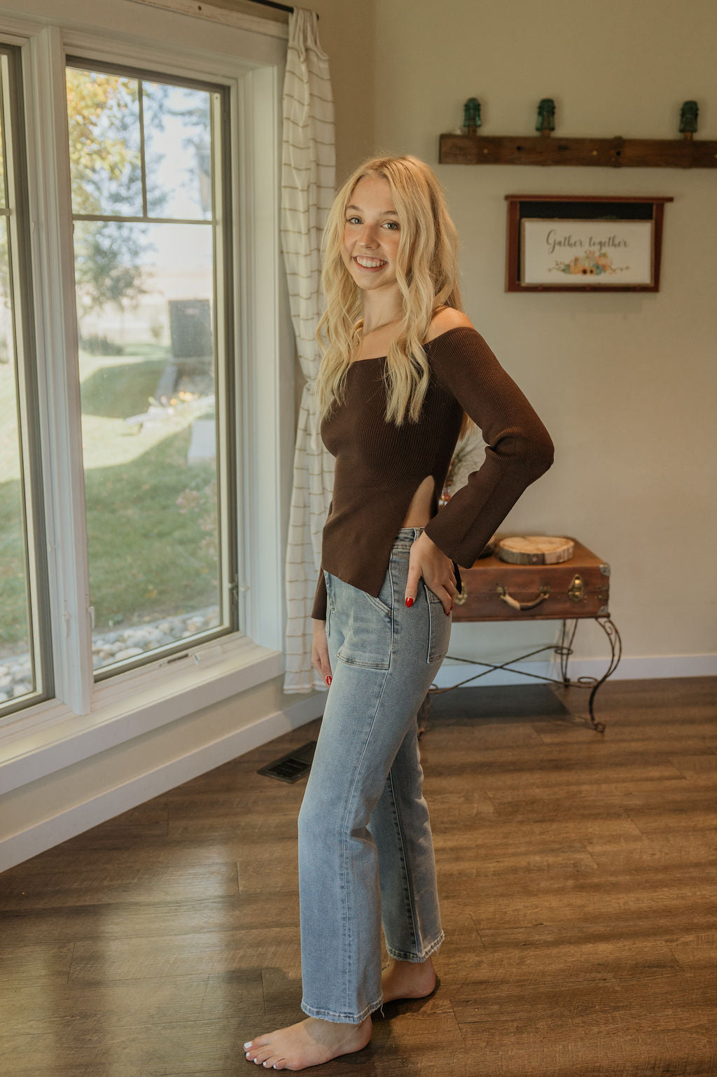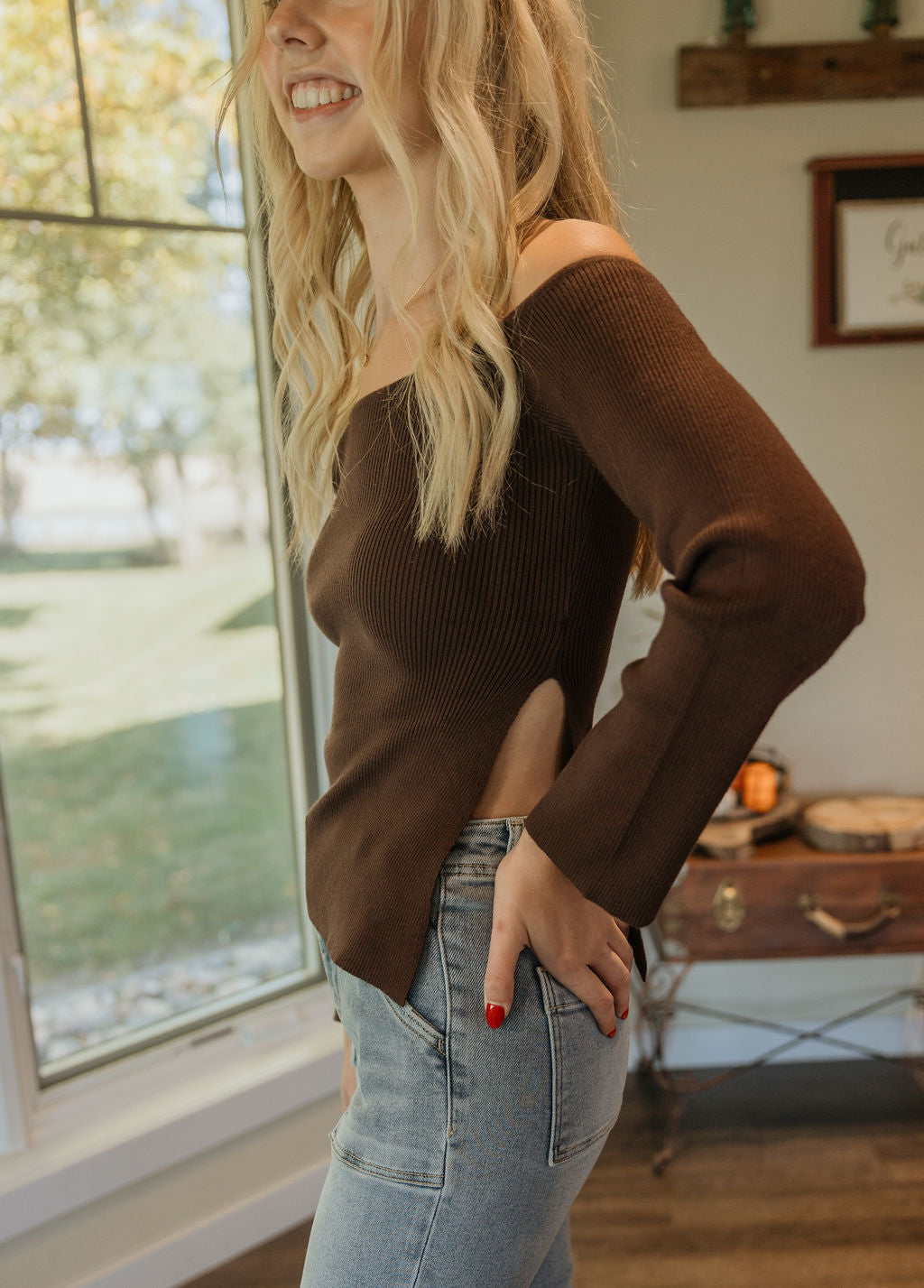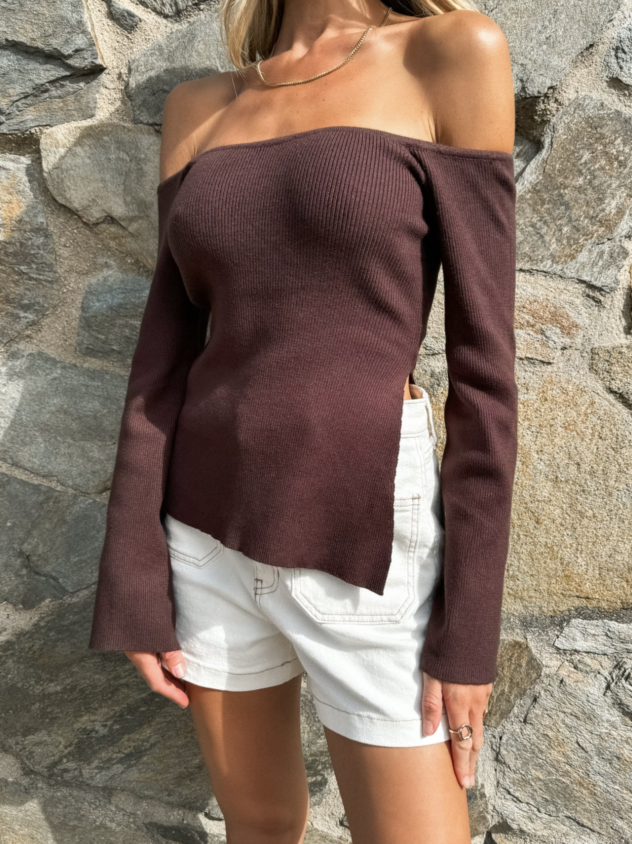 MEJA SIDE SLIT OFF-THE-SHOULDER SWEATER BY IVY & CO