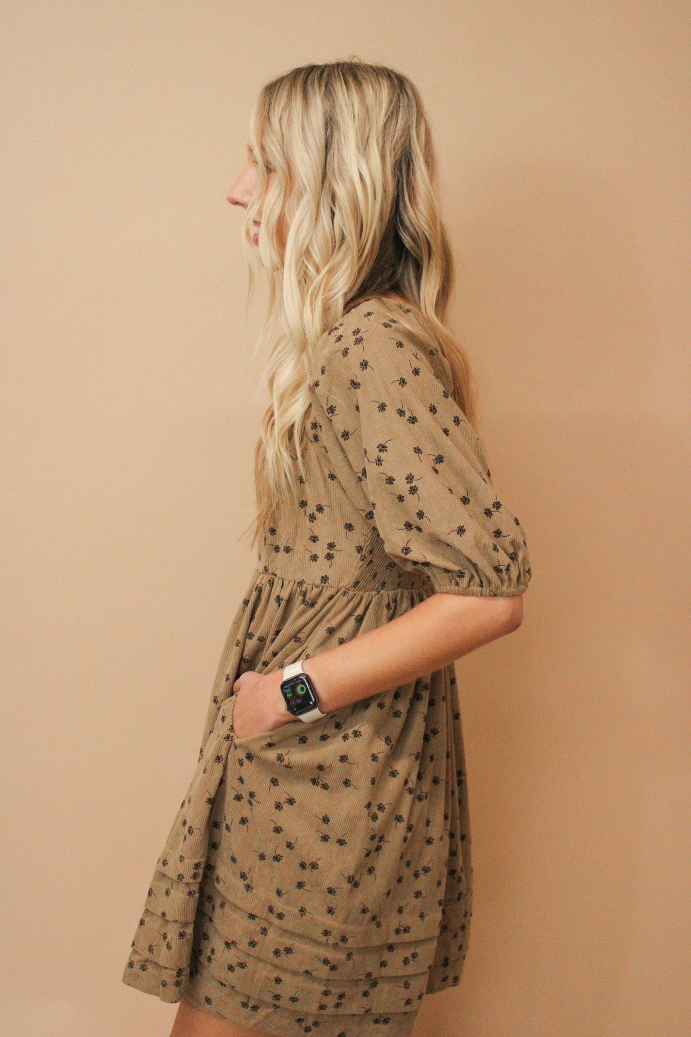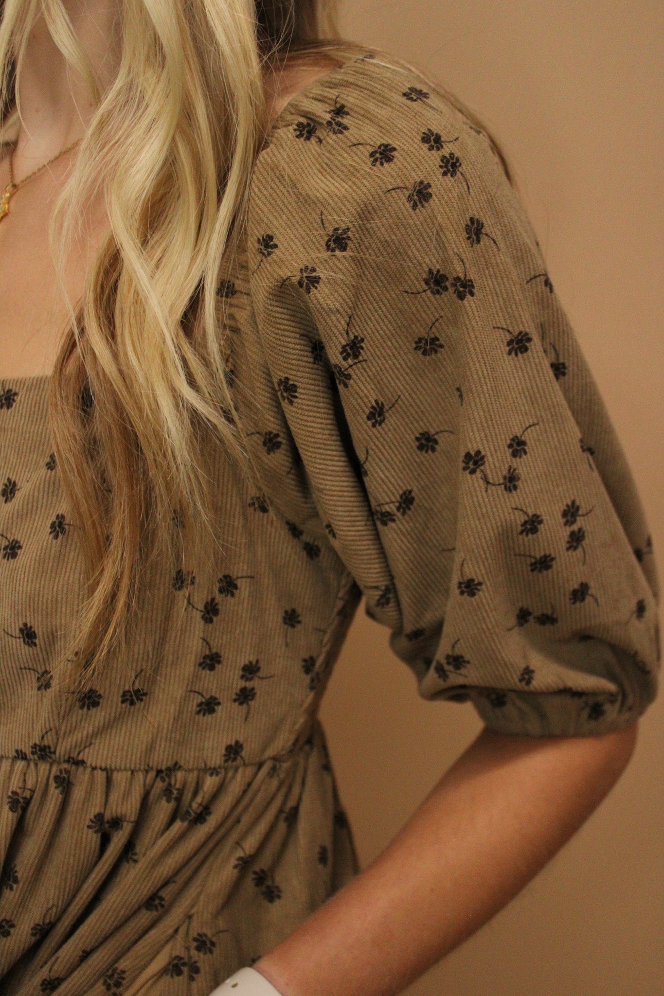 PEYTON FLORAL CORDUROY BABYDOLL MINI DRESS