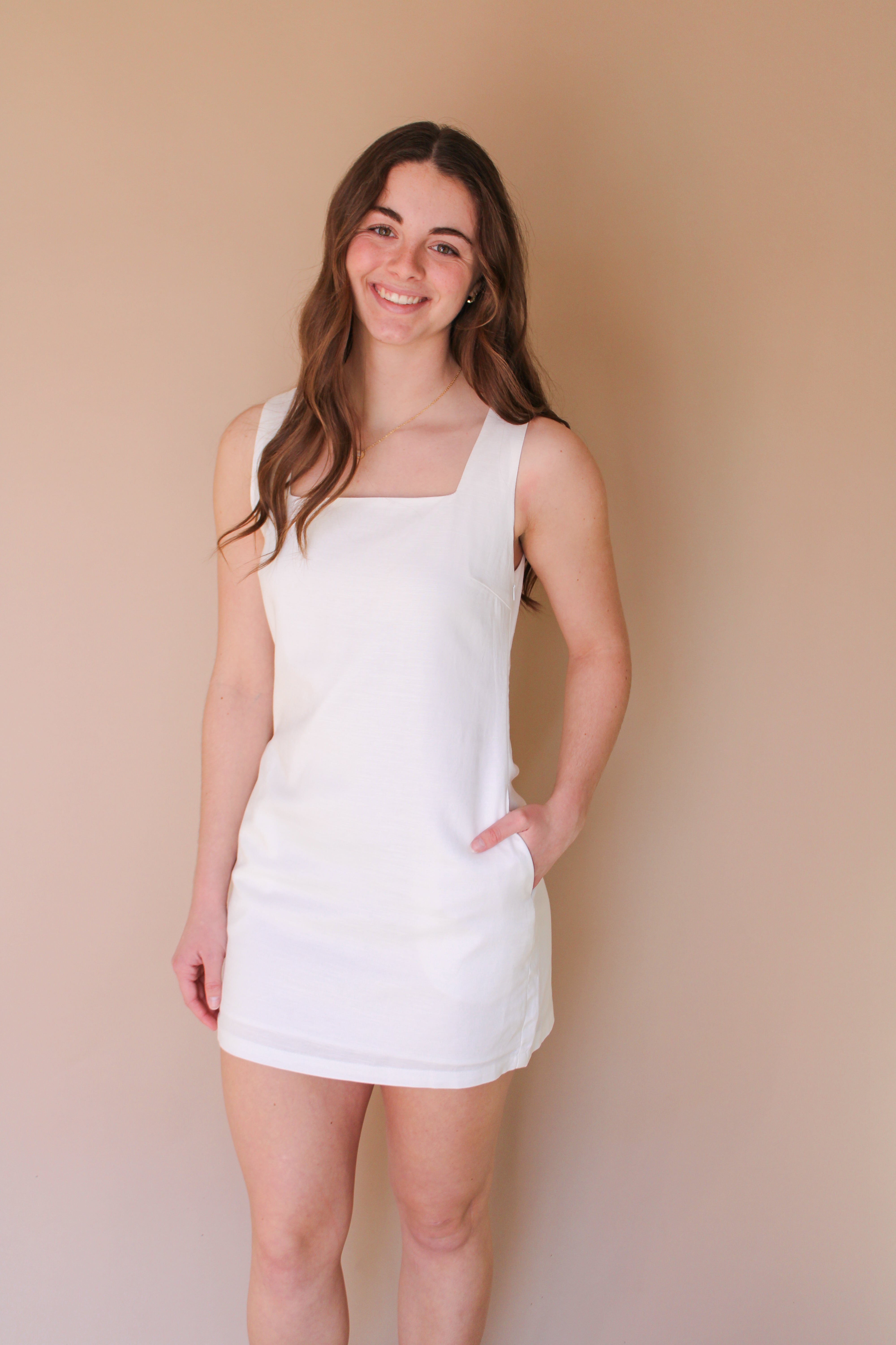 MACIE SQUARE NECK LINEN MINI DRESS BY IVY & CO