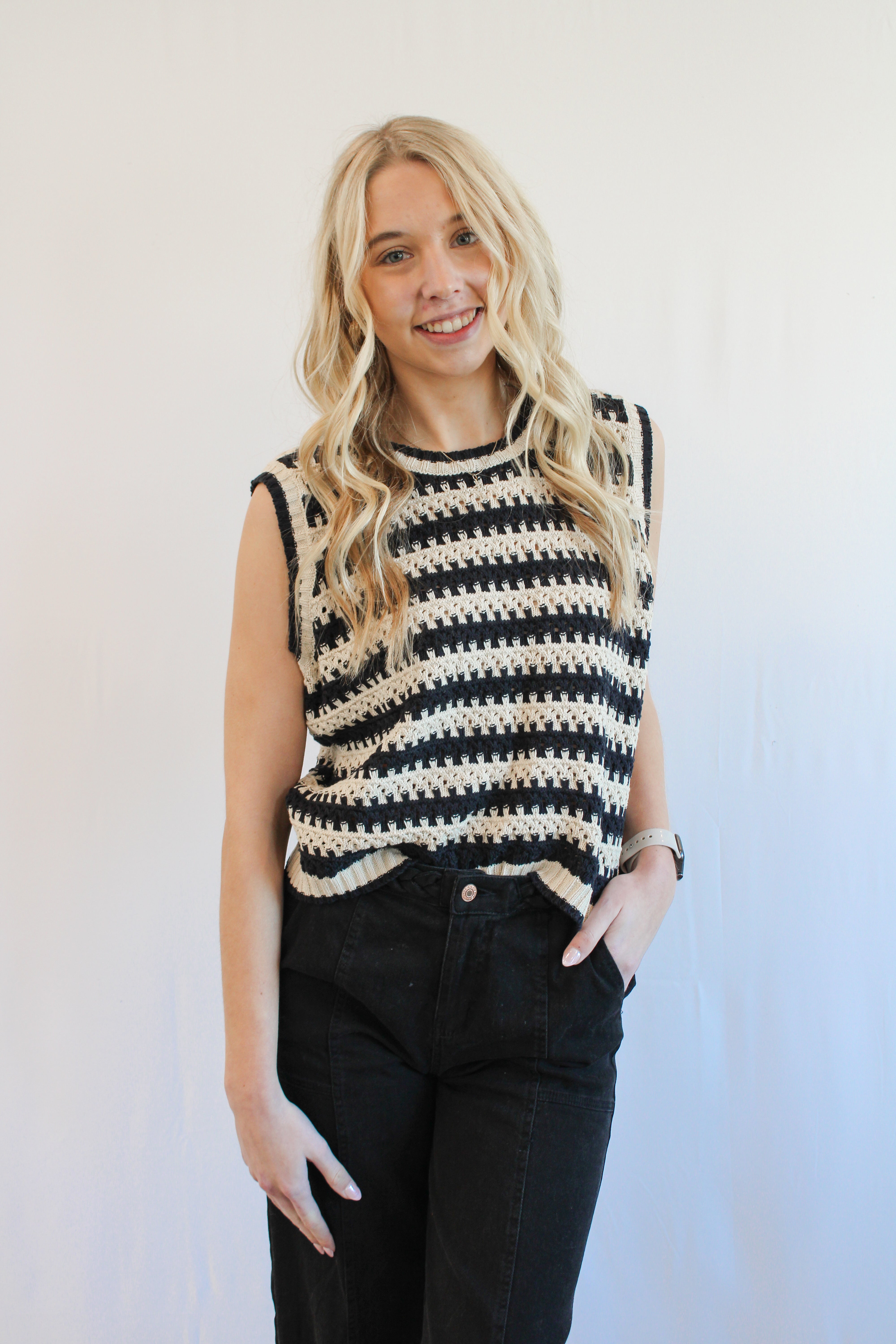 ELEANOR STRIPED CROCHET TANK BY IVY & CO