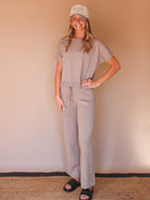 Be effortlessly stylish in the FREIDA sweater set by Ivy & Co. This boxy sweater top and pants set offers a relaxed and comfortable fit, with side slits for added breathability. The full-length pants feature an elastic waistband and drawstring for the perfect fit. Available in size small with a 30" inseam.