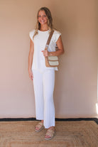 Create a playful look with the Spencer Tank & Pant Set by Ivy & Co, featuring a muscle tank and knit pants sold separately. The pants have slight texture on the bottom, adding a fun and unique touch to your outfit. Mix and match for endless style possibilities!