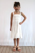 Add a touch of whimsy to your little girl's wardrobe with our Tiana smocked dress. Made with 100% rayon self fabric and a soft 100% polyester lining, this white dress is perfect for any occasion. Let her shine with every twirl!