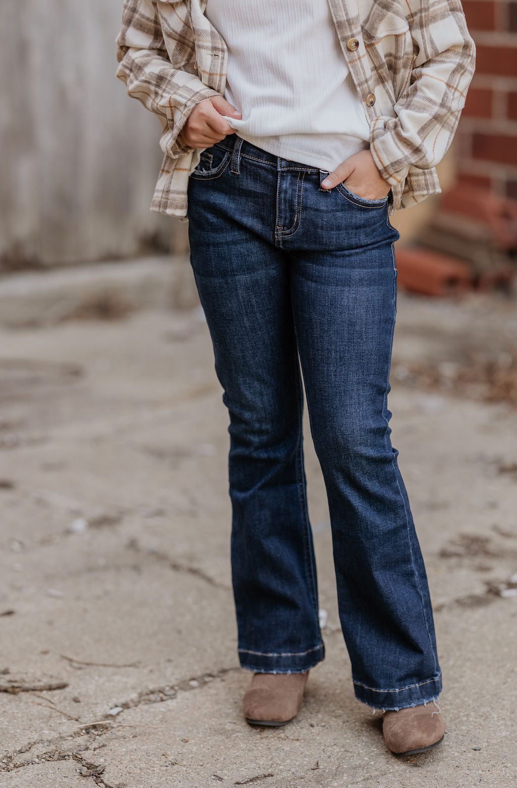 NICKI KIDS DARK WASHED CROPPED WIDE LEG JEANS