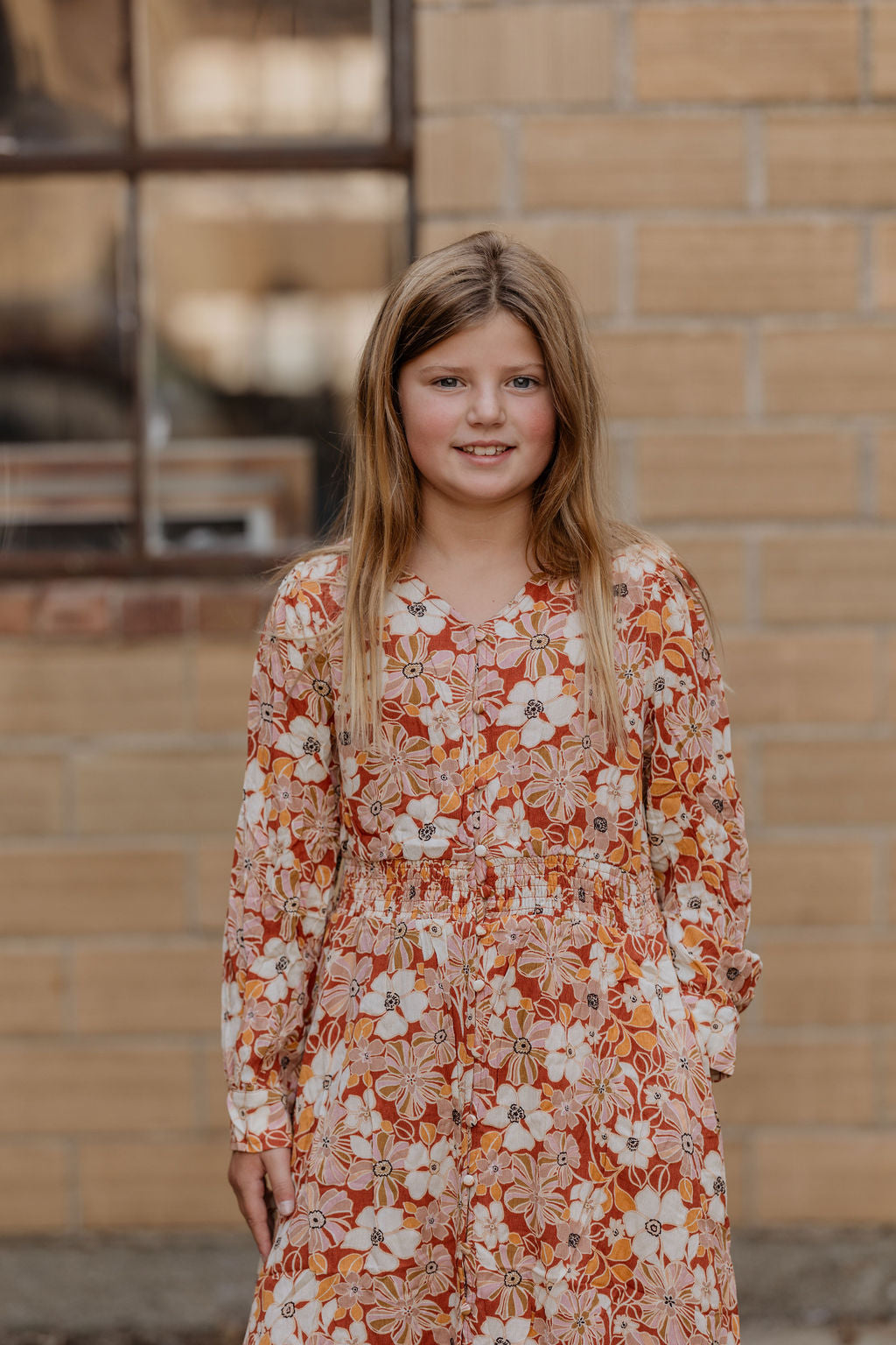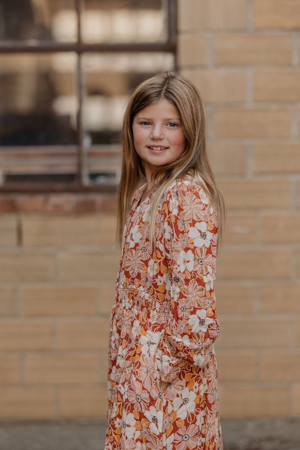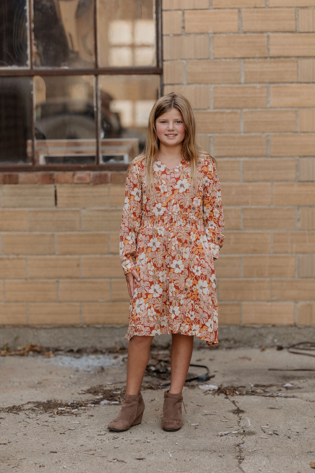 CAYLIN GIRLS FLORAL RUFFLE SLEEVE DRESS