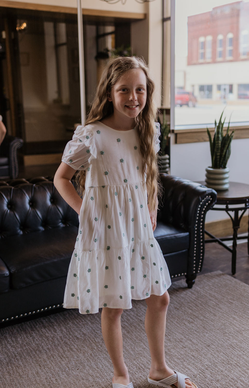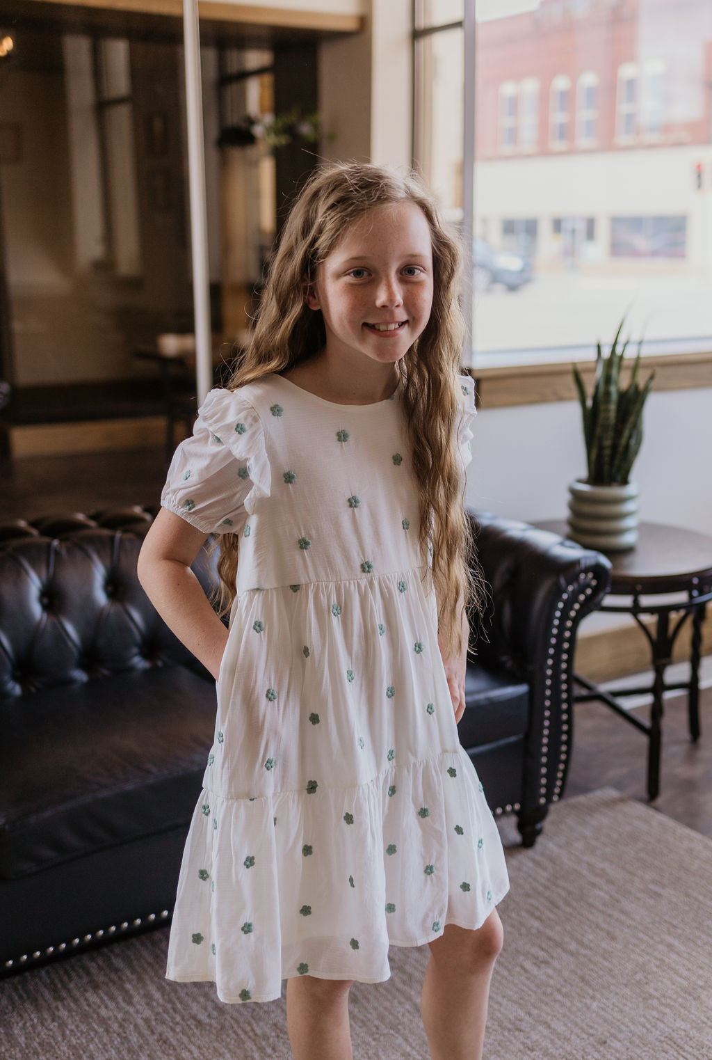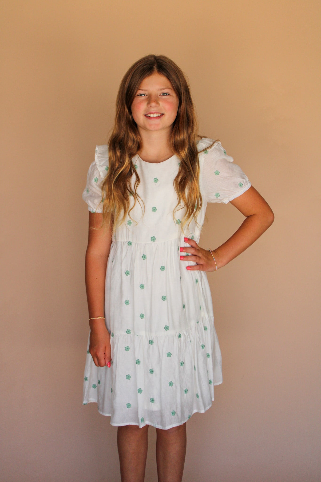 MIKAYLA GIRLS CREAM DRESS WITH SAGE FLOWERS