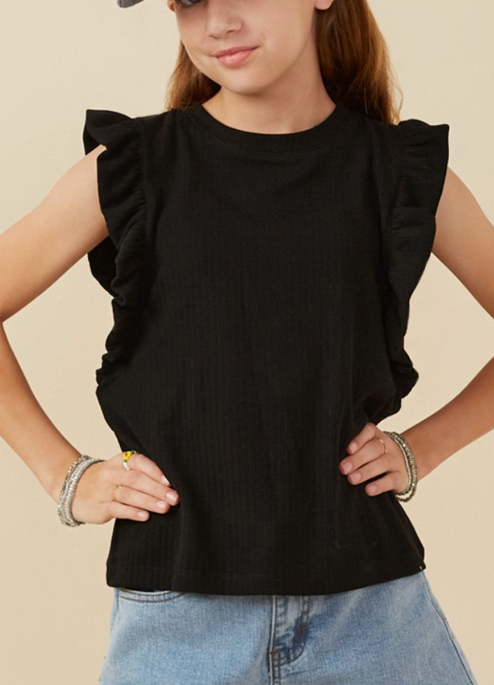 LAURA GIRLS RUFFLE SLEEVE DETAIL TANK TOP 2 COLOR OPTIONS