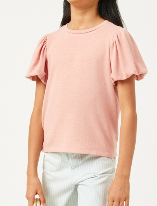 PIXIE GIRLS PINK PUFF SLEEVE TOP