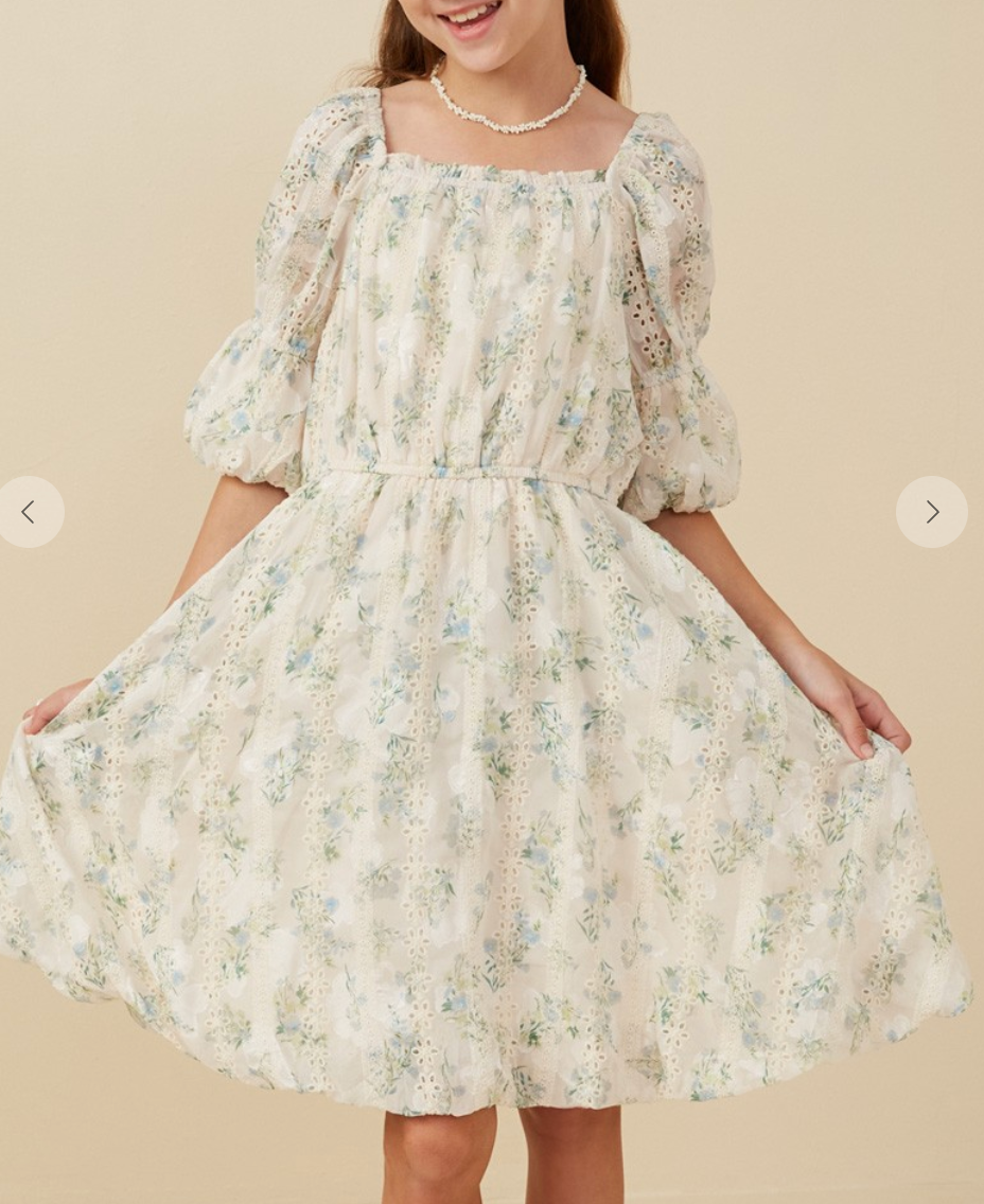 SAMMI GIRLS FLORAL LACE CREAM DRESS