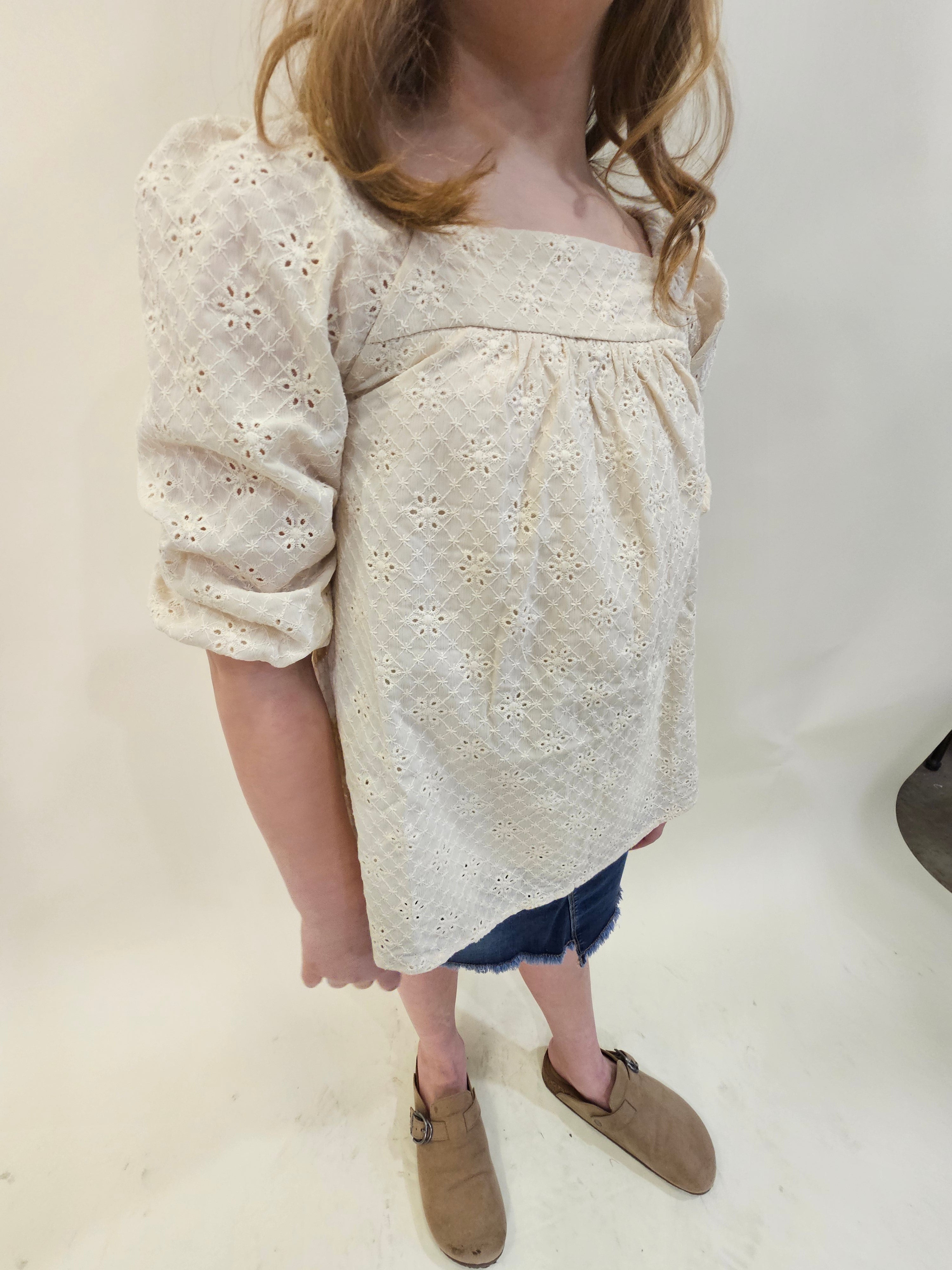 HAILEY GIRLS CROCHET SQUARE NECK IVORY BLOUSE