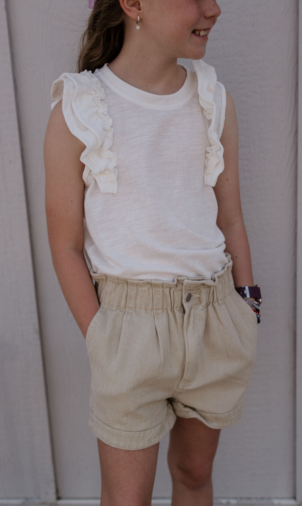 KOREE GIRLS PAPER BAG BEIGE SHORTS