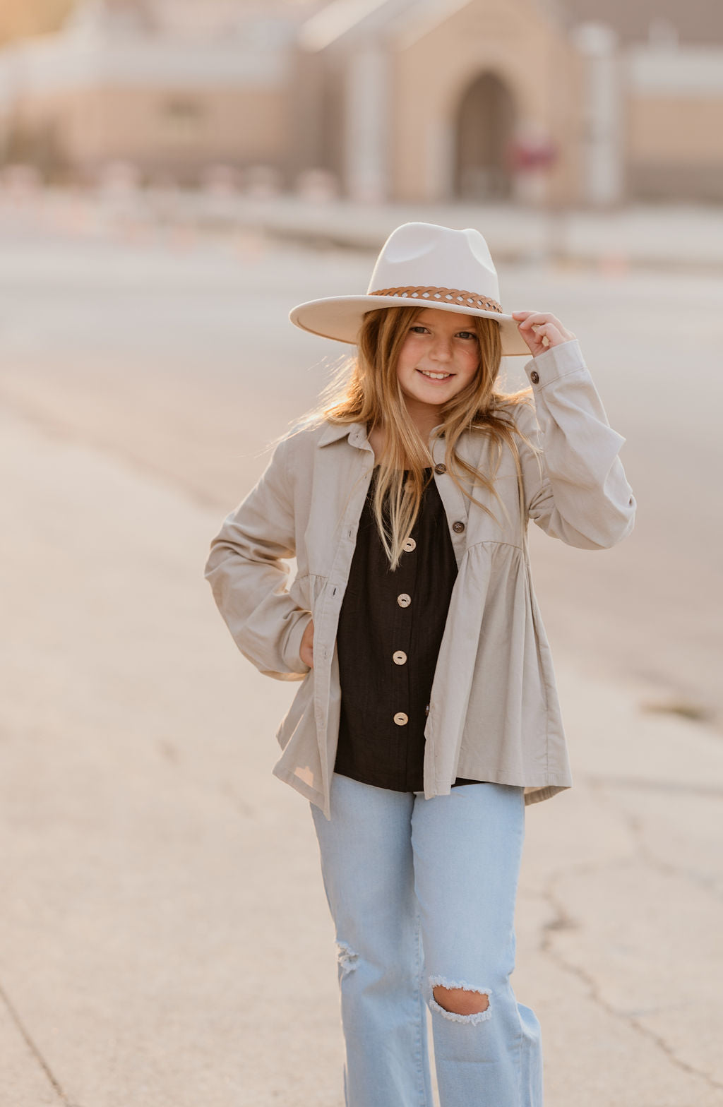 TOSHA GIRLS CHARCOAL BUTTON DOWN TOP