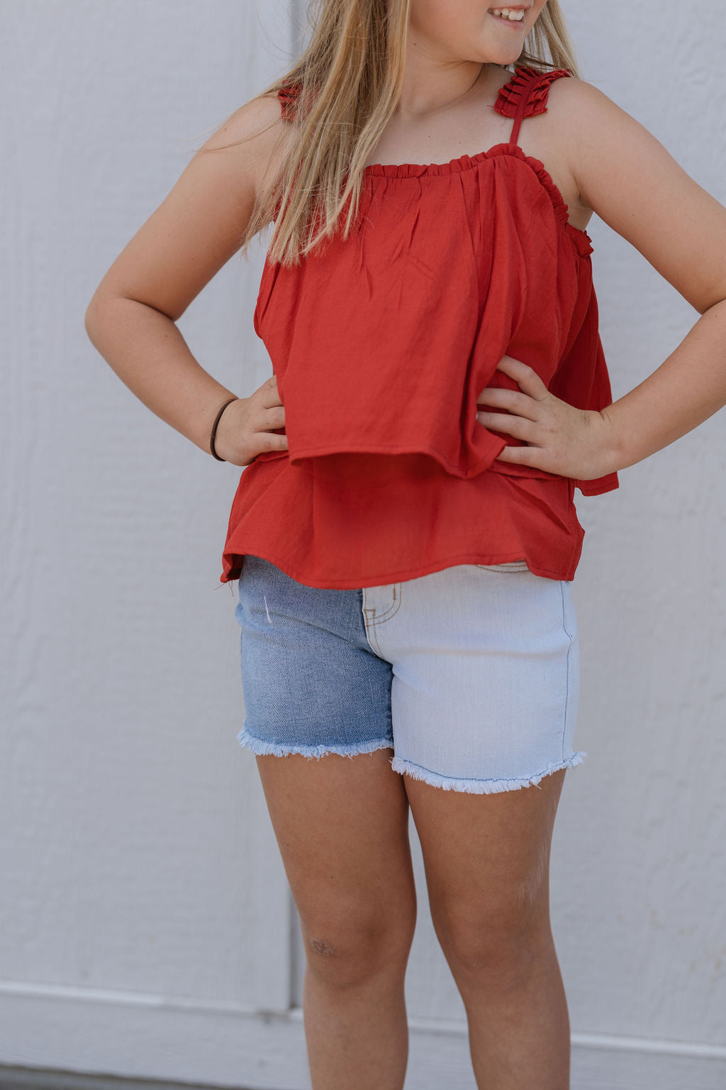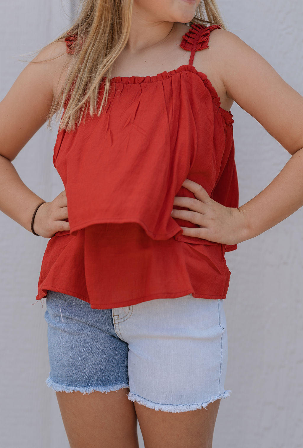 BAILEE GIRLS RUFFLE BUTTON FRONT TANK TOP